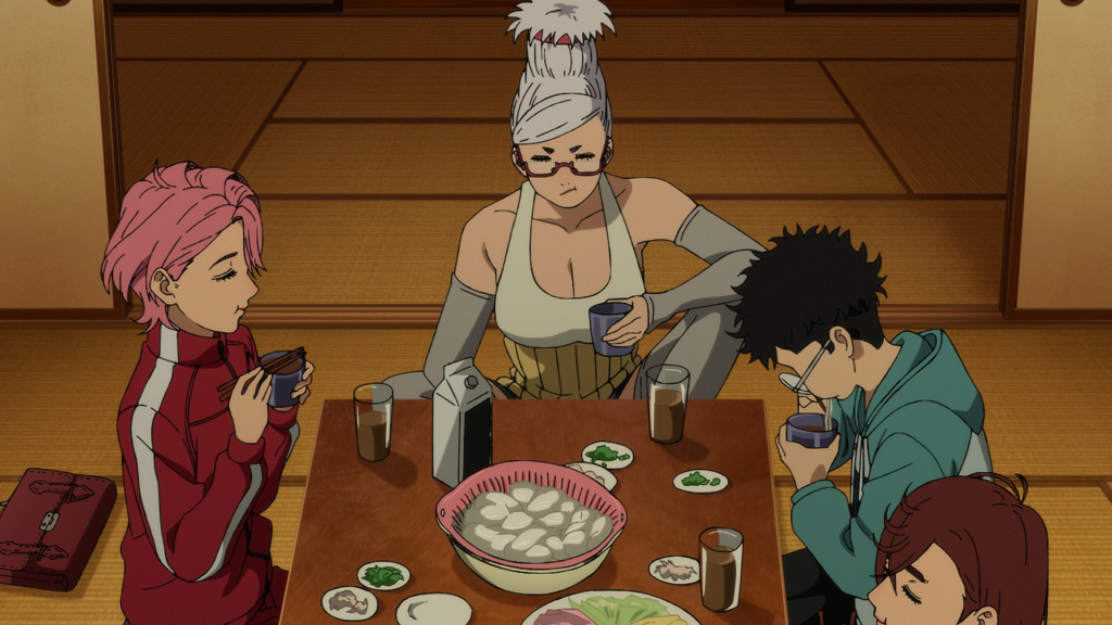 Dan Da Dan gönnt uns kaum eine Verschnaufpause. Zum Einstieg in Volume 2 gibt es lediglich eine kurze RomCom-Phase, die eine Annäherung zwischen Okarun und Momo andeutet, doch dann gibt die Inszenierung direkt wieder Vollgas. Neue Charaktere und Gegenspieler werden eingeführt, bekannte Figuren bekommen charakterliche Erweiterungen (oder auch veränderte körperliche Formen) spendiert, und ganz Allgemein herrscht wieder herrlich skurriles Chaos. Kein Wunder, dient als Ausgangspunkt immerhin die Suche nach den eigenen Kronjuwelen. Aber wundern sollte man sich bei Dan Da Dan sowieso über überhaupt gar nichts, sondern einfach nur die turbulente, hochfrequentierte Reizüberflutung genießen, die einem hier um die Ohren gehauen wird. Ein fliegender Wechsel zwischen rasanter Action mit einer Prise Horror, jeder Menge skurrilen Ideen und Figuren, einer Spur jugendlicher Romantik sowie teils slapstickhaftem, teils wunderbar ausformuliertem, teils derb-frivolem Humor, Dan Da Dan bombardiert den Zuschauer ohne Unterlass mit allem, was den Machern gerade in den Sinn kommt. Und das alles wird erneut garniert mit zahlreichen Querverweisen und Hommagen an Anime-, Film- und Popkultur, was den Einfallsreichtum und die Liebe zur eigenen Durchgeknalltheit einfach nur noch zusätzlich unterstreicht. Bitte Dan Da Dan, mach einfach genau so weiter!
