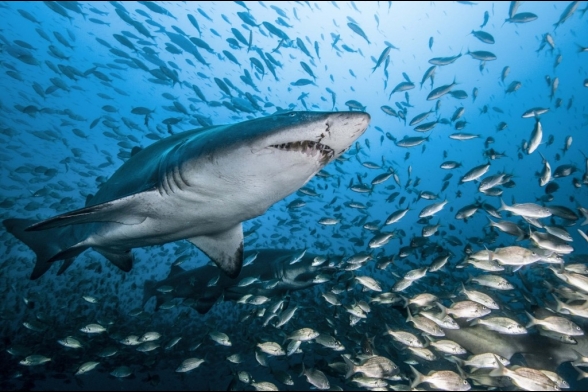 Die Crew rund um die Dokumentarfilmer waren 352 Tage auf hoher See, um spektakuläre Bilder einfangen zu können. So gibt es zum Beispiel den eher unbekannten Fransenteppichhai, der ein Meister der Tarnung ist. Er lebt in einem farbenfrohen Korallenriff mit über 1500 Fischarten zusammen und lauert auf dem Meeresboden. Er trägt ein Tarnmuster und sein Maul sieht mit seinen Fransen aus wie Korallenstücke. Er beobachtet die Fische und im richtigen Zeitpunkt schnappt er zu, doch in Wirklichkeit saugt er seine Beute ein und verdaut sie dann im Magen langsam mit einer gefährlichen Säure. Eiliger hat es dafür der sogenannte Kurzflossen-Mako, ein schneller Torpedo mit Zähnen. Er ist zwei Mal schneller als ein Delphin und schafft bis zu 80 km/h. Er ist somit eine der schnellsten Fischarten der Welt.
