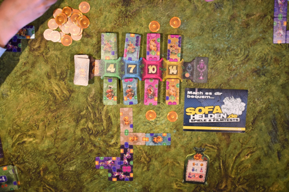 Runde um Runde versucht Ihr Euch einen Garten zu puzzeln, bei dem Ihr möglichst viele vollständige Edelsteine habt. Diese bringen Euch Punkte, von denen Ihr Euch wiederum neue Plättchen kaufen könnt. Irgendwann werdet Ihr so in der Lage sein, das Siegplättchen mit dem Wert Siebzehn beziehungsweise Zwanzig zu kaufen. Ist das der Fall, endet das Spiel und die Person, die das Siegplättchen gekauft hat, gewinnt das Spiel.