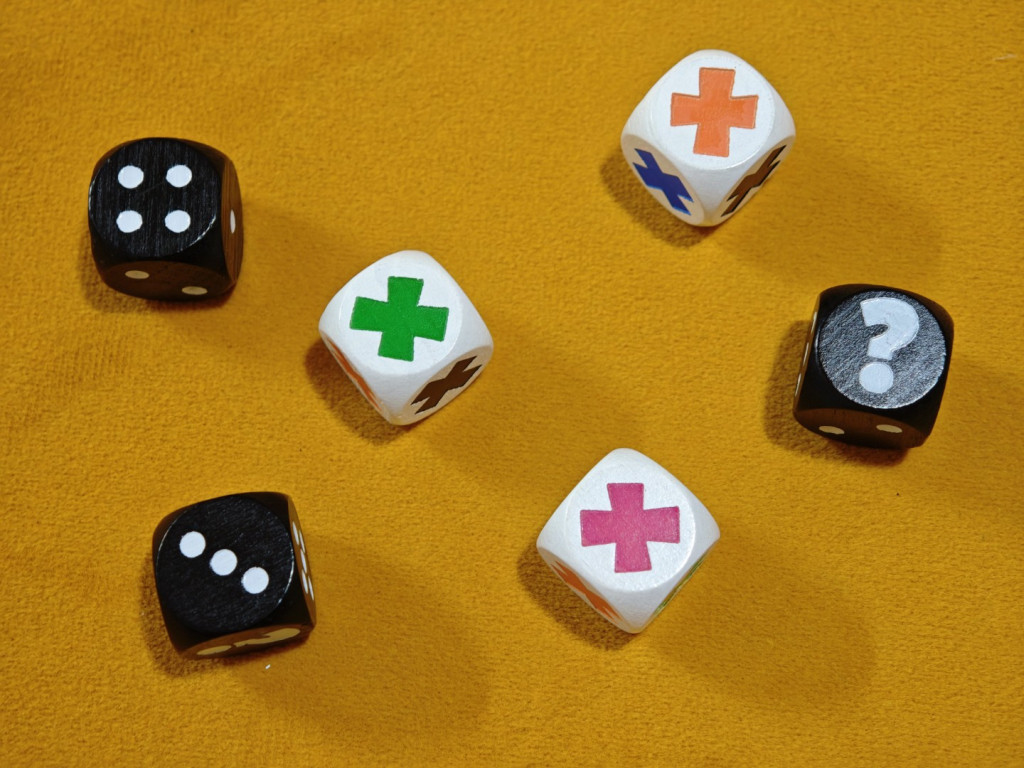 Was macht man eigentlich mit den X-Chips, sobald man sie umgedreht hat? Sieben der zehn X-Chips zeigen nur eine leere Rückseite, drei allerdings einen Bonus. Man kann einen Joker erhalten, die einmalige Option, eine Würfel-Augenzahl um Plus/Minus eins zu verändern oder die einmalige Fähigkeit, auch die vom aktiven Spieler gewählten Würfel verwenden zu dürfen. Jetzt kommt aber erst der Clou: Der aufgedeckte Bonus ist nicht für einen selbst, sondern muss an einen Mitspieler verschenkt werden – eine interessante Art der positiven Spielerinteraktion. Und wie gesagt: sobald ein Spieler seinen zehnten X-Chip umgedreht hat, gewinnt er und die Partie endet sofort.