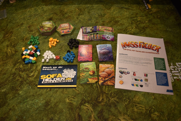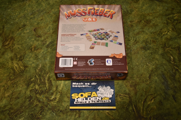 Zwölf Seiten umfasst die Anleitung zu NussFieber. Drei Seiten davon sind der Spielverlauf, zwei der Aufbau und zwei die Endwertung. Hinzu kommt ein Solomodus, der ebenfalls zwei Seiten in Anspruch nimmt. Neben den FAQ und der Spielübersicht bleibt nun noch eine Seite für Begriffserklärungen. Diese ist gut gemeint, aber unserer Meinung nach auch eine kleine Schwäche der Anleitung, denn teilweise sind die Begriffe ein wenig verwirrend am Anfang.