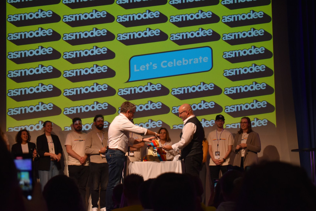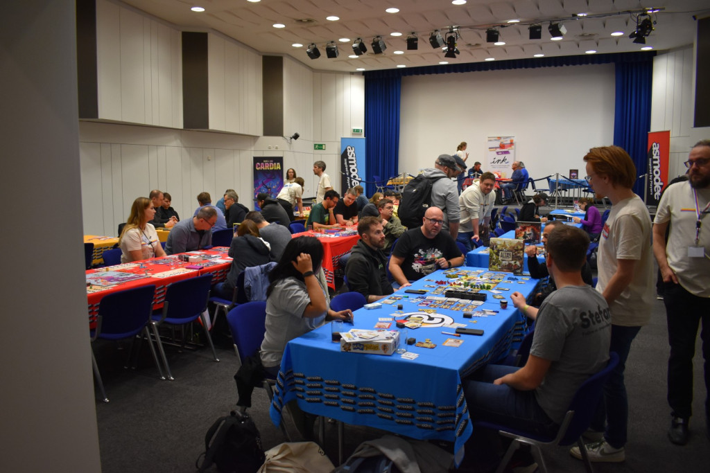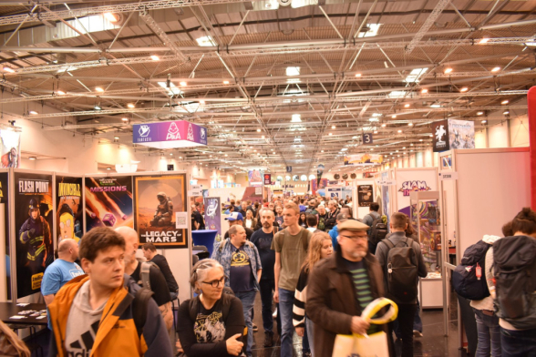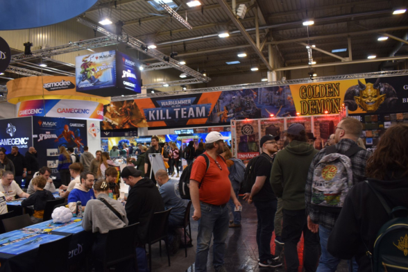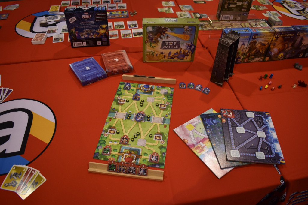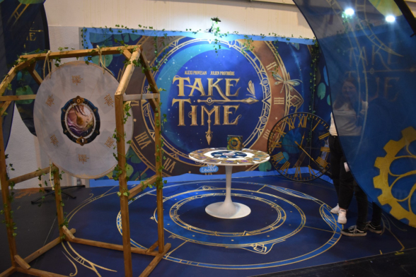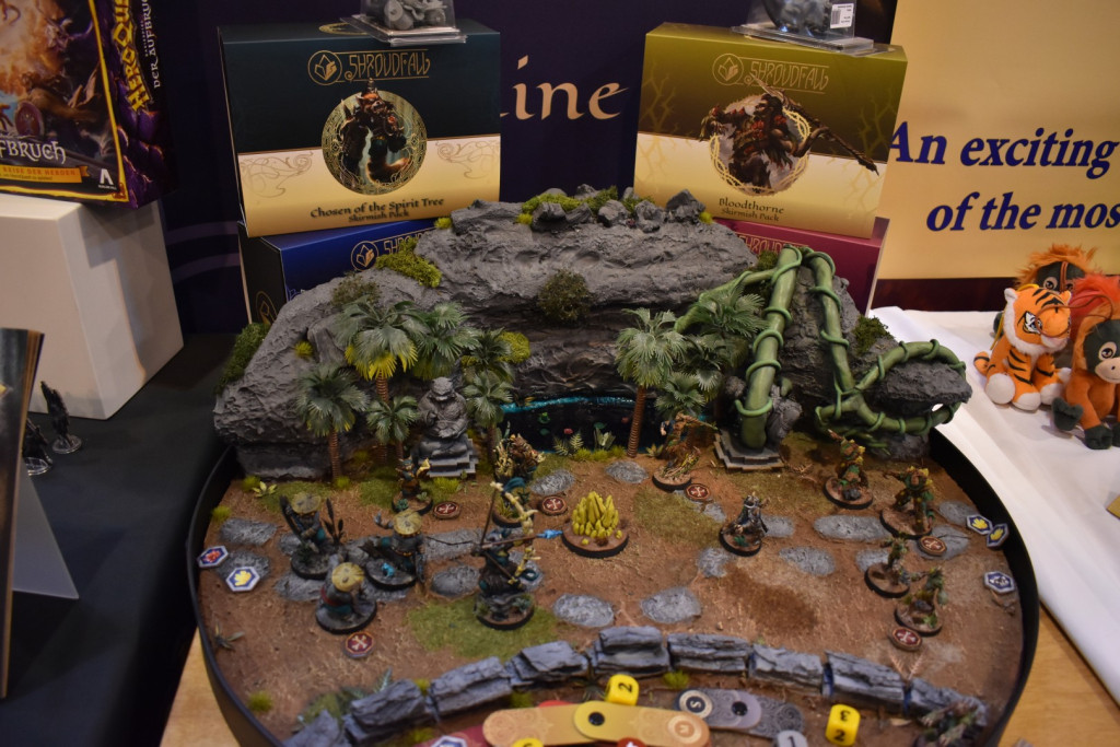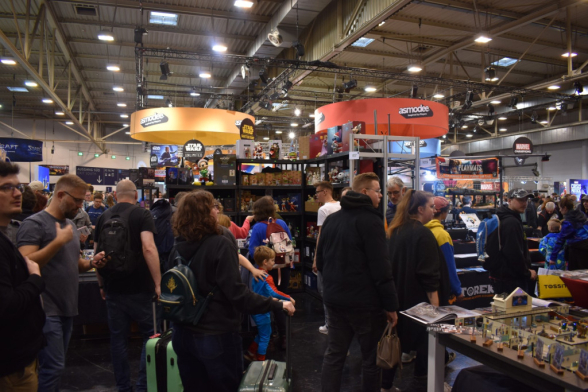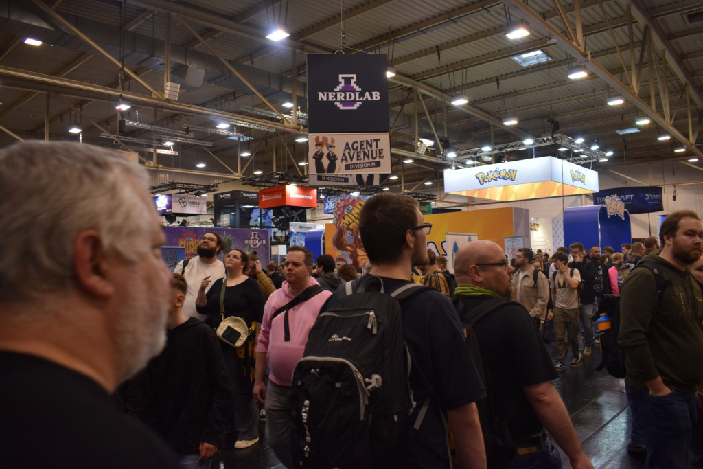 Mittlerweile ist es eine gute Stunde später und wir schlendern in Richtung Halle 3, denn hier steht ein Presseevent an. Wir schnuppern kurz rein, bevor wir in weitere Termine gehen und dabei feststellen: Der Unterschied zwischen Halle 6/7 (Familienspiele) und Halle 3 (Expertenspiele) ist gigantisch. Während man in den ersten Hallen relativ gut laufen kann, muss man in Halle 3 einen auf Lightning McQueen in der Traktorszene machen: Lücke suchen und mit Vollgas drauf zusteuern oder sich in der Masse treiben lassen. Mittlerweile hat sich der erste Eindruck etwas gewandelt: Man realisiert, wie groß die Messe ist und wie viele Leute die angestrebten 220000 Messebesucher*innen in 4 Tagen eigentlich sind. Trotzdem sind wir dazu gekommen noch einige gute Gespräche mit Verlagen zu führen und uns dort Spiele zeigen zu lassen.