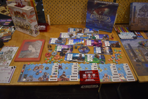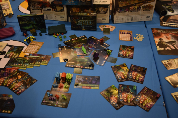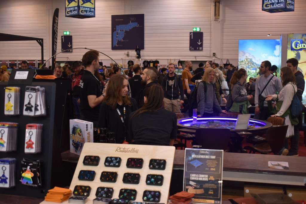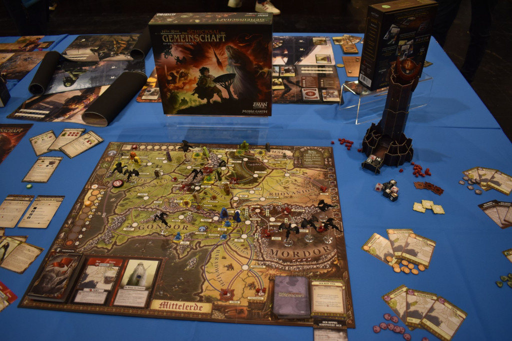 Den Samstag begannen wir wieder am Eingang West und Halle 3, mit Ronin von Queen Games. Da wir um 11:00 einen Termin bei Iongames zu einer Runde Atlas hatten, konnten wir es aber nicht zu Ende spielen. Neben weiteren Terminen folgten noch eine Runde Flip 7 an einem „Black Jack“-Tisch und eine Runde Heat, zu dem uns unser Lieblingspromoter von asmodee angestiftet hatte. Kurz vor Ende schafften wir es dann sogar noch Herr der Ringe - Das Schicksal der Gefährten zu spielen, was bei uns sehr durchwachsen abschnitt. Ob es an der deutsch-englischen Spielgruppe lag oder am Spielprinzip… wir sind uns nicht sicher. Mit fünf Spielen war der Samstag dann auch der Tag, an dem wir die meisten Spiele spielen konnten.