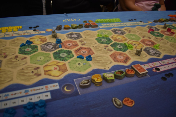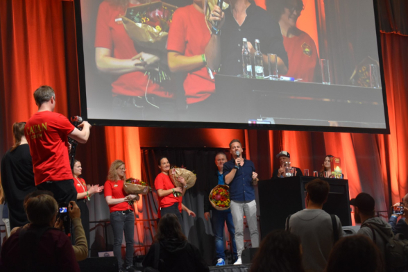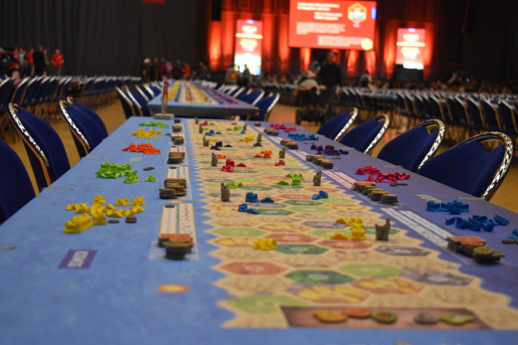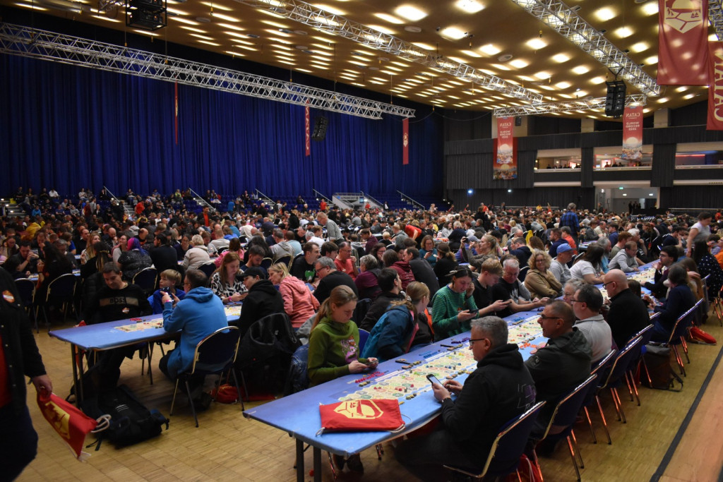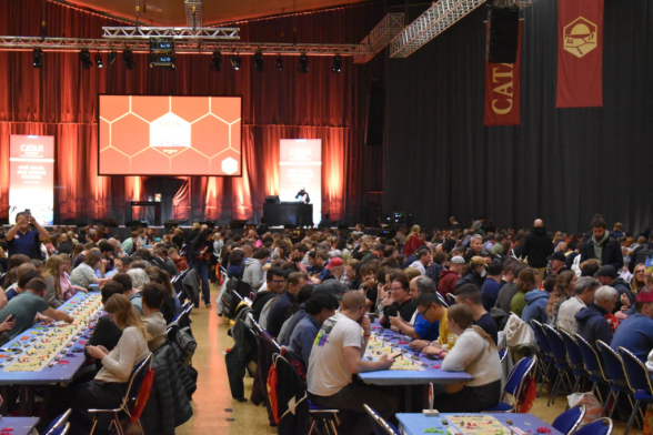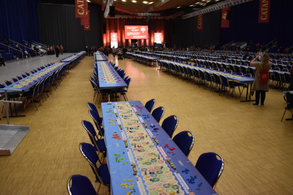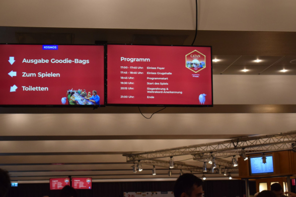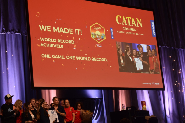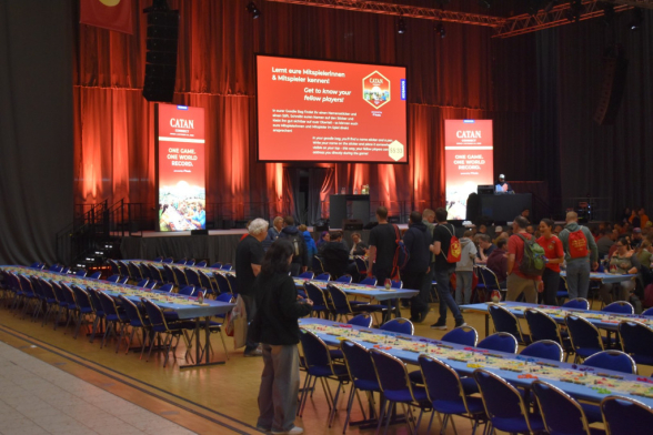 Am Freitag fand im Anschluss an die SPIEL (ok, bereits ab 17:00) ein Weltrekordversuch zu Catan Connect statt. Ziel war es den aktuellen Rekord von 1160 gleichzeitig Spielenden aus den Niederlanden zu knacken. Dankenswerterweise durften wir dabei sein. Ursprünglich Josi als Spielerin, ich geplant als Zuschauer, doch im Laufe des Abends stellte sich heraus: Es wird knapp. Also wurden auch die Zuschauer gefragt, ob sie mitspielen wollen. So auch ich. Somit gab es weniger Fotos, dafür mehr Spielvergnügen. Der Abend war gut geplant und es gab musikalische Unterhaltung mit Smudo als DJ. Das Spiel selbst war relativ schnell vorbei und der Sieger war ein 14-Jähriger. Wir staunten nicht schlecht. Dann kam der entscheidende Moment: Haben wir den Rekord überboten oder nicht? Nach sorgfältiger Zählung kam raus: Ja, mit 1170 Spieler*innen wurde der Rekord geknackt. An dieser Stelle noch einmal herzlichen Glückwunsch an die Veranstalter und Danke, dass wir dabei sein durften!