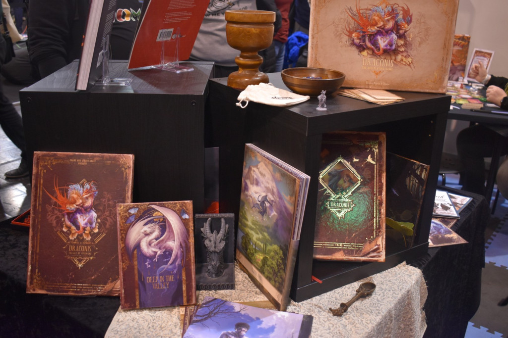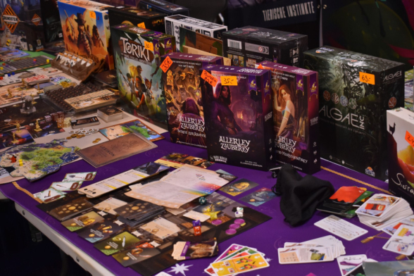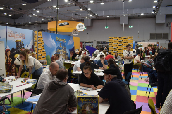 Am Sonntag hatten wir, da wir mit der Bahn angereist waren, unsere Koffer dabei. Daher begaben wir uns wieder zum Eingang Ost, da hier die Kofferabgabe war. Darauf verzichteten wir aber am Ende, da sich unsere Koffer sehr gut schieben ließen und der Sonntag von allen Tagen der leerste war. Wir spielten Druids of Edora und sonst nichts. Wir waren den ganzen Tag in den Hallen unterwegs, sprachen mit Verlagen und ließen uns Neuheiten zeigen. Am Ende tat ich mich sehr schwer, die Messe zu verlassen, irgendwie hatte ich das Gefühl „hab ich einen Verlag vergessen?“, „Habe ich ein Spiel übersehen?“, „irgendwas war doch da noch?“. Doch irgendwann musste ich dann aufgeben und wir verließen die Messe Richtung Hauptbahnhof, um die kommenden fünf Stunden bis zur Abfahrt unseres Zuges irgendwie tot zu schlagen…