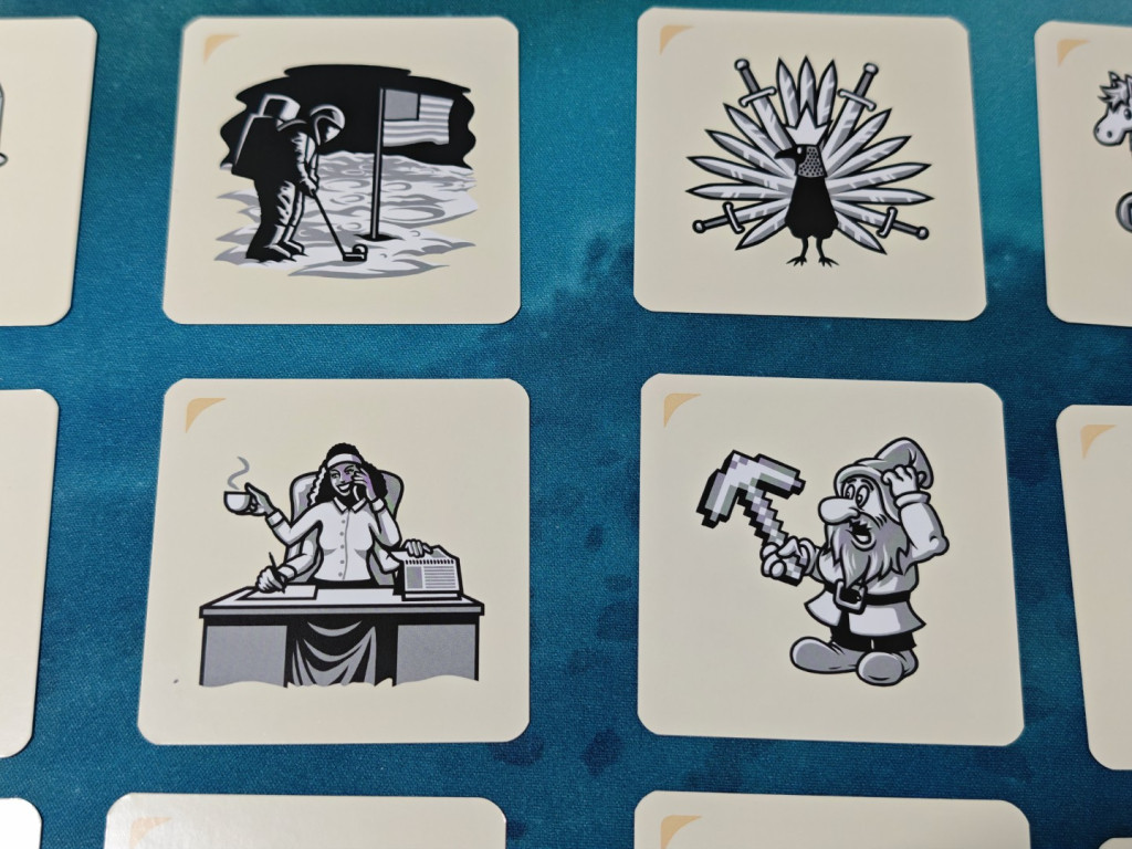 Schade, dass man nicht einfach „Rot 4“ sagen kann, denn alle Bilder sind schwarz-weiß gehalten. Insgesamt ist es gefühlt viel schwieriger Tipps zu geben als in den Wort-Varianten, weil viel mehr Gemeinsamkeiten gefunden werden können, aber eben auch mit den Bildern des gegnerischen Teams.