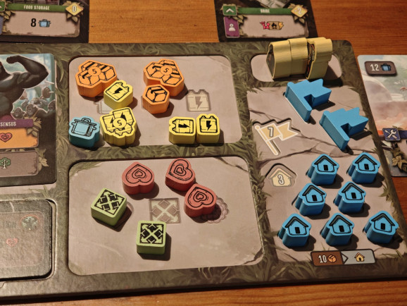 In Natera: New Beginning gibt es keine Siegpunkteleiste. Aber nicht täuschen lassen, denn sehr wohl gewinnt am Ende der Partie der Spieler mit den meisten Siegpunkten. Abgerechnet wird am Spielende.