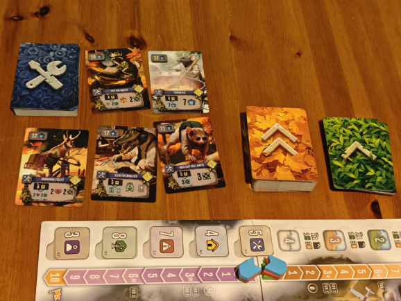 Kann ein Spieler keine der vier Hauptaktionen ausführen, muss er passen. Haben alle Spieler gepasst, folgt die Ruhephase. Spieler nehmen alle ihre Arbeiter zurück und führen alle Produktionseffekte aus. Solche findet man auf unterschiedlichem Spielmaterial wie die Stammes-Anführer-Karte, das zugehörige Plättchen, gespielte Erkundungskarten, das Wissenschafts-Tableau, Distrikt-Scheiben und mehr. Man bekommt also insgesamt einiges an Einkommen. Danach erhalten alle Spieler vier neue Erkundungskarten, je nach Runde in unterschiedlicher Zusammensetzung aus Basis und fortgeschrittenen Karten. Zuletzt wird der Startspielermarker weitergegeben, der Rundenanzeiger vorwärtsbewegt und eine neue Runde beginnt. In der vierten Runde findet keine Ruhephase statt; hier endet das Spiel mit der Endwertung.