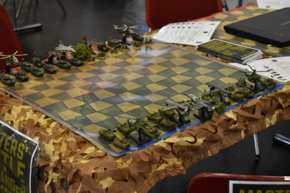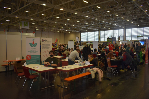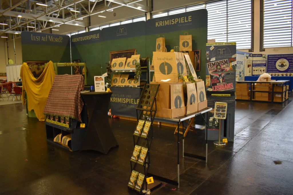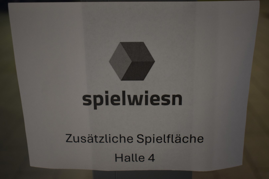 Tag 2 bedeutete nicht nur für uns mehr Personen, mit denen wir spielen „mussten“, sondern auch mehr Besucher für die Spielwiesn. Man merkte schon direkt beim Einlass: heute ist deutlich mehr los. Anders als am ersten Tag entschied sich die Security auch dazu, die Tickets der Besucher*innen schon einzuscannen und alle vor den Hallen zu sammeln, bevor die Türen zu ebendiesen geöffnet werden. Nachdem die Messe offiziell eröffnet war, mischten auch wir uns unters Volk und schlossen als erstes unsere Bildungslücke bezüglich des originalen 7 Wonders. Anschließend versuchten wir uns an Van Helsing und tauchten ab mit The Crew: Mission Tiefsee. Dann standen wir etwas auf dem Schlauch, was wir spielen sollten. Also drehten wir eine Runde durch die Halle 5, um vielleicht einen Verlagstisch zu ergattern, aber: keine Chance. Somit blieb noch eine Hoffnung: ein größeres Spiel auf der Exklusiv-Fläche zu spielen. Und siehe da: hier konnten wir noch einen letzten Tisch ergattern und das Spiel Thebai anspielen. Letztes Jahr gab es diese Fläche auch schon, doch wir hatten sie noch nicht genutzt. Dieses Jahr war sie größer und wir hatten das Gefühl, dass man hier gut Chancen hat, einen Platz zu ergattern und zu spielen. In unseren Augen eine sehr gute Lösung für die teureren Spiele. Hier waren auch einige Erklärer*innen unterwegs, sodass sich die meist komplexeren Spiele nicht erst durch die Regelstudie in die Länge zogen. Auch dieses Jahr wurden etwa gegen Mittag weitere Spielflächen eröffnet. Dieses Mal wurde Halle 4 hinzugefügt und mit Tischen und Bänken ausgestattet.