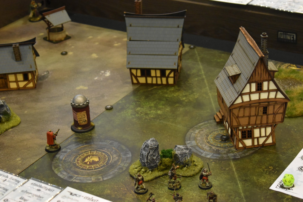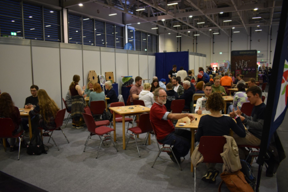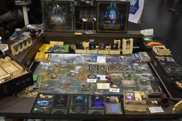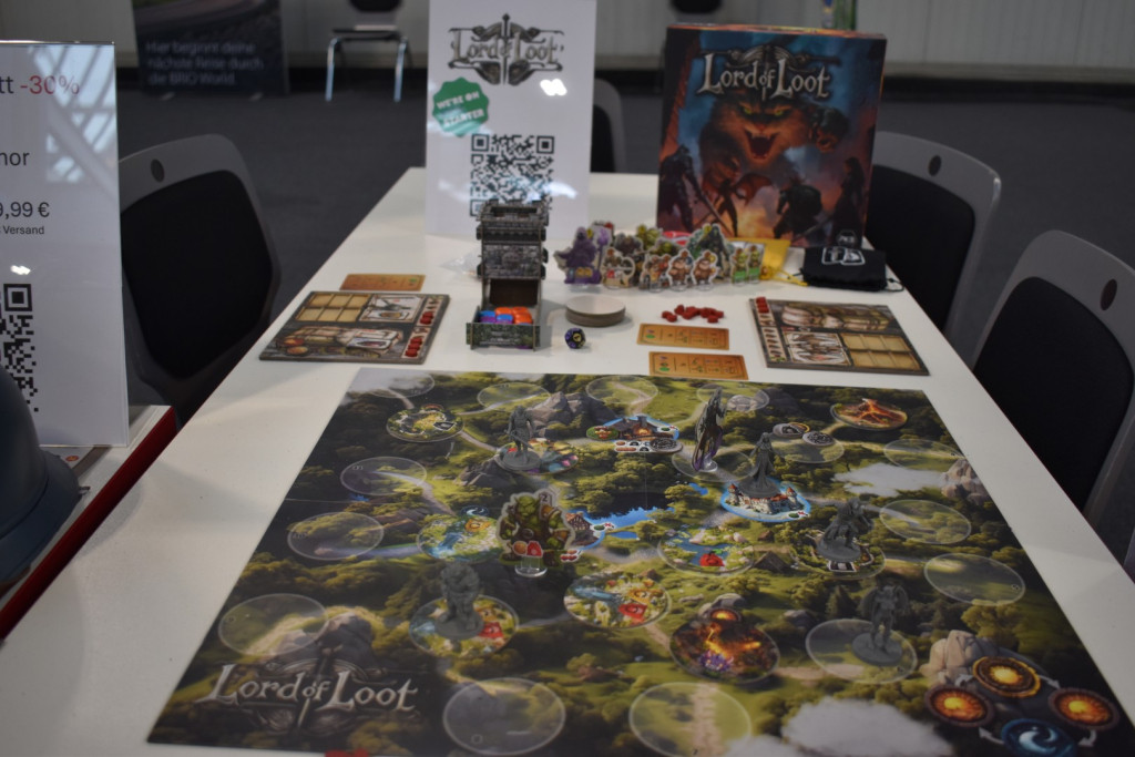 Was uns im Vorfeld aber schon aufgefallen ist: man konnte den einen oder anderen neuen Verlag entdecken. Hierzu gehörte zum Beispiel auch der Rollen- und Brettspielverlag Squink, den wir schon auf der SPIEL 2025 unter die Lupe genommen hatten. Kurz vorher hatten wir gerade erst NussFieber getestet und wollten uns nach den neusten Infos zu Fateforge und dem Crowdfounding-Projekt Draconis erkundigen. Letzteres läuft übrigens nicht mehr lange und wir haben selbst investiert. Denn es wurde uns leider zu gut als „anfängertaugliches Rollenspiel für die ganze Familie“ gepitcht. Anschließend ließen wir uns auf der großen Spielfläche nieder, um ein paar Spiele zu spielen. Hierzu gehörten das etwas ältere Karak von Kosmos, Kavango von Schmidt Spiele und das lange unterschätzte Neuland von Game Factory. Doch wie so oft, verging die Zeit wieder viel zu schnell und es war plötzlich 18:00. Noch eine Stunde bis zu unserem Event…