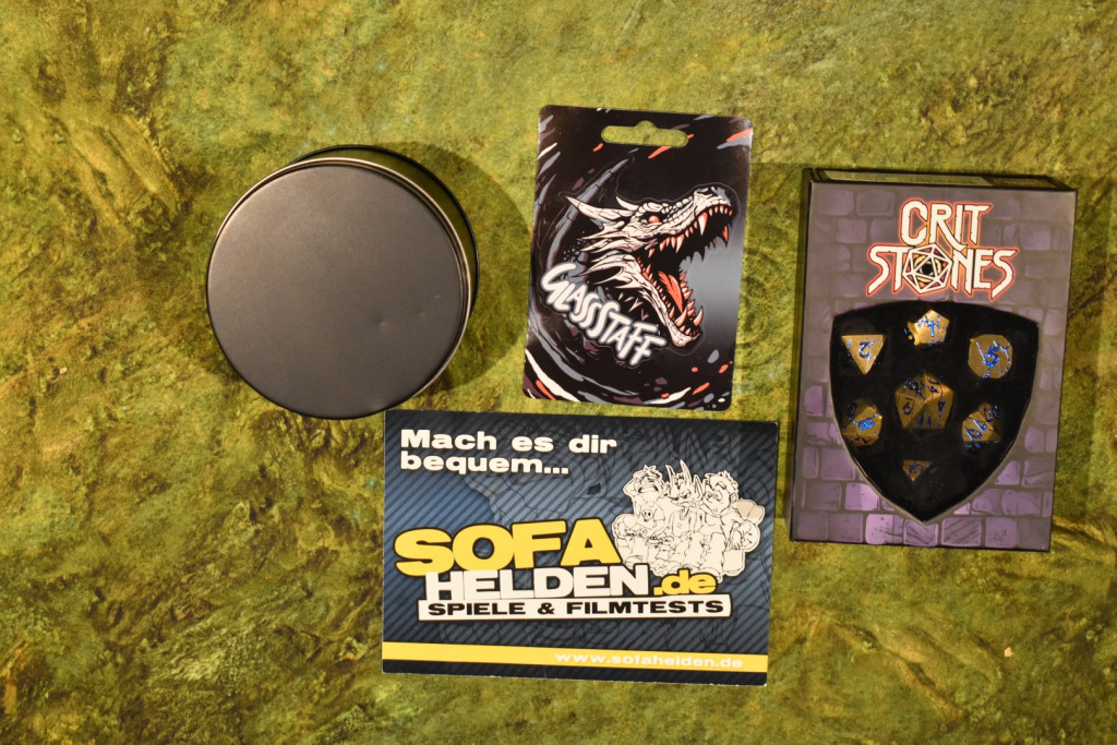 Bereits auf der Spielwarenmesse 2025 stach uns der Stand von Glassstaff ins Auge. Schuld daran waren vor allem die Dice Trays und Arenas mit Drachenkonterfeit in verschiedenen Farben. Aber bei genauerer Betrachtung fielen uns auch die zahlreichen Würfelvariationen aus Metall auf. Hier besonders die zerstörerisch anmutenden Bane Würfel, bei denen man vermutlich auch Angst um seinen Tisch hat, wenn gewürfelt wird. Insgesamt schon alles ziemlich cool, aber wenn man kein Dungeons and Dragons spielt, ist sowas eigentlich der Overkill. Nachdem wir nun aber bei den Chroniken von Drunagor immer wieder das Problem hatten, das da ein W20 für vier Personen einfach zu wenig ist, dachten wir uns, wir starten mal einen Test der Würfel. Ob die Crit Stones getauften Würfel bei uns auch kritisch punkten konnten, erfahrt Ihr in unserem Review…