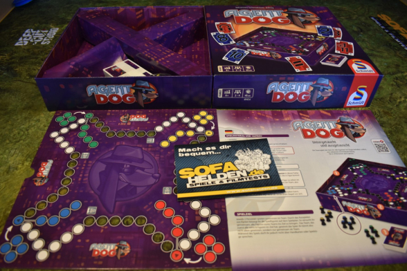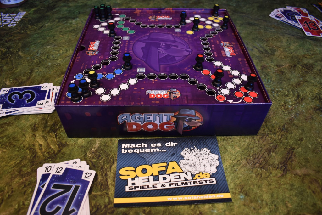 Ansonsten ist alles wie beim Original. Ihr kämpft Euch nach vorne, benötigt Rauskommen-Karten, um Eure Figuren ins Spiel zu bringen und dürft auf den Zielfeldern weder schlagen noch überspringen. Wichtig zu erwähnen ist noch die Spieldauer. 45 Minuten sind schon arg kurz und wahrscheinlich nur möglich, wenn man eher friedfertig oder ohne groß nachzudenken spielt. Agent Dog ist sehr taktisch, weshalb man einfach nachdenken muss und dank der untergetauchten Figuren teilweise auch seinen zuvor überlegten Zug noch einmal neu überdenken muss. Wir haben für unsere Runden im Schnitt zweieinhalb Stunden gebraucht. Gerade wenn die „brennende vier“ zum Einsatz kam, wurden die Karten quasi neu gemischt und es war wie ein Neustart.