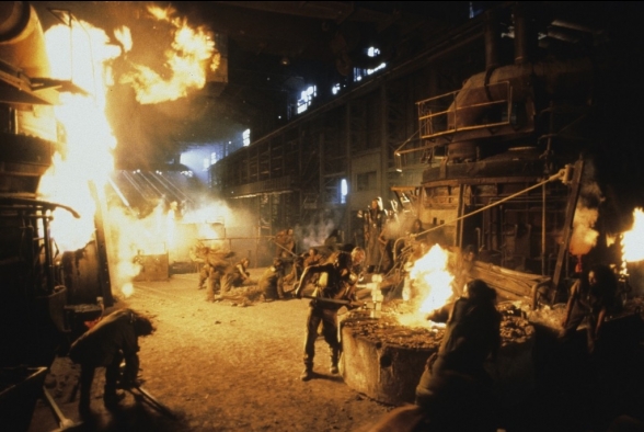 Und genau so geht es immer weiter. Im Prinzip brauchen die Psychlos Gold, dass sie zu ihrem Planeten beamen, Gold gibt’s auf der Erde. Menschen auch, also bringt man den verbliebenen Neandertalern das gesammelte Wissen der Menschheit und der Psychlos bei, logisch, damit diese unbeaufsichtigt, ganz klar, mit schwerem Gerät und Flugmaschinen, was sonst, ´ne Goldader ausbuddeln. Oh Schreck, die Menschen wehren sich, darauf hätte niemand kommen können. Doch den Gipfel der Hirnrissigkeit, das Grande Finale, die Mutter aller bescheuerten Twists hebt sich der Streifen bis zum Schluss auf. Warum erzähle ich das hier alles so haarklein? Der Film gibt sich allergrößte Mühe, sein gemartertes Publikum nicht mit nerviger Handlung zu belästigen und schüttet Kübel um Kübel sinnlose Aneinanderreihungen von Logikfehlern im Minutentakt über dessen Schädel aus. Die besten Stellen fasse ich hier also mahnend zusammen. Doch nun zum letzten Streich des bis dahin schlüssigsten Scripts seit Berlin - Tag und Nacht. Dieses Manifest will nämlich, ohne mit der frisch gezupften Wimper zu zucken, dem, mittlerweile weinenden, Zuschauer dieses hier verkaufen: Aus dem Nichts taucht glücklicherweise ein weiterer Stamm hygienebewusster Wilder auf. Garnier-Werbegirl Jonnie nimmt sich diese zur frisch rasierten Brust und führt sie mir nichts dir nichts zu einer, oh Wunder, nicht zerbombten, voll ausgestatteten und mit Strom versorgten Militärstation. Dort warten glücklicherweise, jetzt kommt‘s, ein ganzer Haufen frisch betankter und voll aufmunitionierter Harrier Senkrechtstarter. 1000, in Worten eintausend, Jahre unberührt und alles funktioniert, wie frisch vom Band, da soll noch einer sagen, Amis bauen nicht für die Ewigkeit. Schwarzkopf-Salesman Tyler überlässt voller Zuversicht das Simulatortraining den neuen Buschmännern. Der Simulator funktioniert selbstverständlich auch noch einwandfrei und ist, was für eine Frage, schon auf „degenerierter Höhlenmensch“ programmiert. L’Oréal-Locke Jonnie eignet sich in der gleichen Zeit, also ungefähr eine halbe Stunde, die Funktionsweise einer Atombombe an. Vom Steinekratzer zum Waffenphysiker in weniger als 2 Wochen, welch ein Aufstieg! Mir fehlen die Worte…