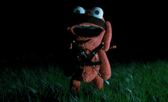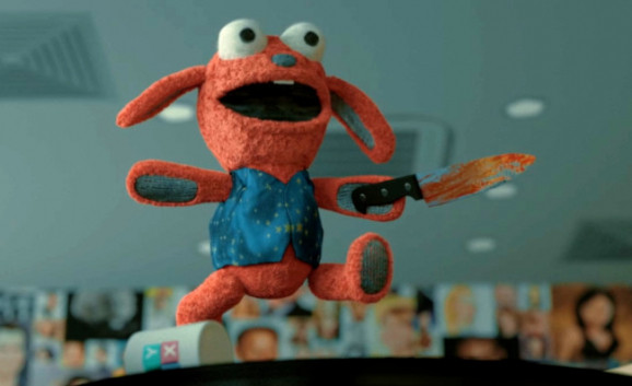 Benny Loves You beginnt nervig mit einem brüllenden Balg, was glücklicherweise zeitnah den Löffel abgibt. Darauf folgt eine etwas längere Durststrecke, in der sich der Film die Zeit nimmt, darzulegen, was für ein unfassbar nutzloser Lappen Jack eigentlich ist. Hier hängt der Film ein bisschen durch, versucht aber die Ereignisarmut durch Gags aufzufangen. Manche zünden, manche nicht, aber der Schnitt ist positiv. Aufgedreht wird dann bei Bennys erstem Mord, der wie ein WM-Sieg zelebriert wird. Man muss den kleinen Mörder einfach liebhaben, wenn er stolz sein blutiges Werk mit einem quietschig-goldigen „Tadaaa“ feiert. Der Film nimmt sich zwar zu keinem Zeitpunkt ernst, doch Benny sticht den Vogel endgültig ab. Da fällt dann auch kaum auf, dass hier ganz tief in der Klischeekiste gewühlt wird oder ausnahmslos jeder Charakter maximal die Cleverness eines Betonmischers besitzt. Benny Loves You will Spaß machen, da kommt es auf Logik oder Vernunft nicht an. Und das gelingt dem Film mühelos, schafft es Holt ohne Probleme seine gelungenen und witzigen Ideen überzeugend in Szene zu setzen. Man erkennt zwar auf den ersten Blick, dass Benny in der Totalen dem Freeware-Rendertool entsprungen ist, doch dafür sind Blut und Gekröse noch handverteilt und reichlich vorhanden. Dem Film gelingt das Kunststück zwar günstig aber nie billig auszusehen. Hier steckt jede Menge Herzblut drin, vor und hinter der Kamera.