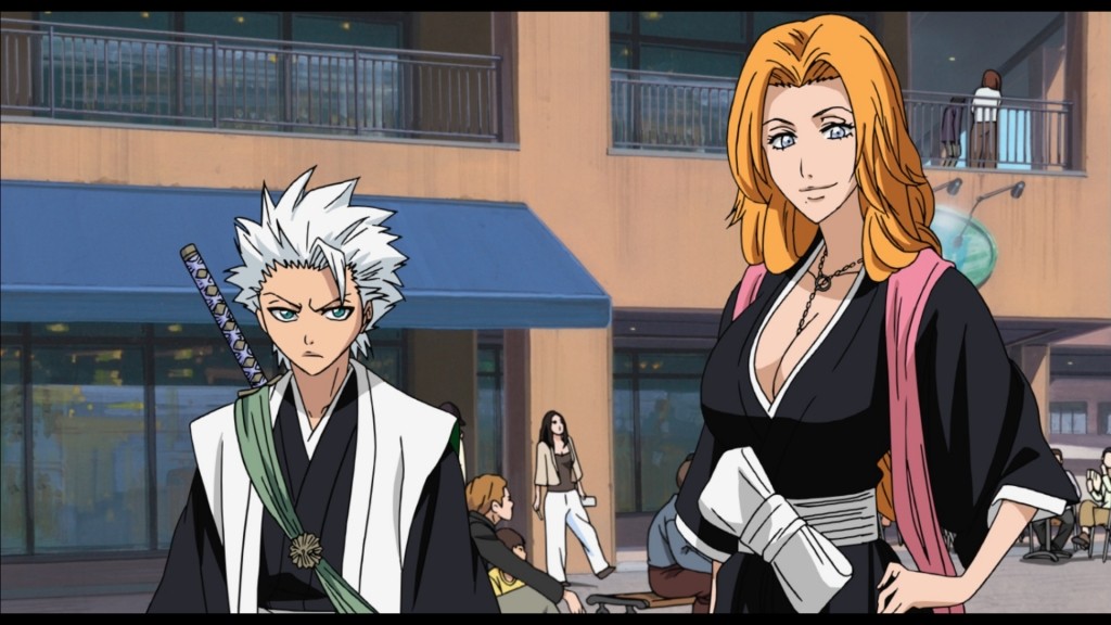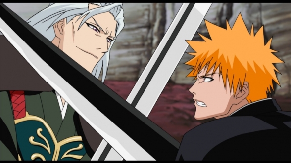 Allein aufgrund der sehr ähnlichen Gruppe von Gegenspielern werden Fans natürlich unweigerlich an die ebenfalls derzeit auf DVD erscheinenden Filler der unliebsamen Bount erinnert - ihr Anführer hat ein vernarbtes Gesicht und weiße Haare, es gibt eine Frau im Team, einen bulligen Muskelprotz, usw. ...und qualitativ läuft die erste Hälfte des Films auch darauf hinaus, ein ähnlich allenfalls durchschnittliches Unterhaltungserlebnis genießen zu können. Senna muss vorgestellt werden, die Blank-Geister sind ebenfalls neu, dann werden noch jede Menge der ohnehin sehr zahlreichen Charaktere aus der Serie involviert und ehe man sich versieht ist die erste Stunde von nicht einmal ganzen anderthalb bereits um - gefühlt sehr schnell, aber auch nicht übermäßig spannend. Interessant wird der Film erst in seinen letzten 20 Minuten, wo dann auch endlich die richtigen Gegenspieler auf den Plan treten, für deren Vorstellung nur leider kaum noch Zeit bleibt, sodass ihre Charakterzüge und Beweggründe nahezu gänzlich untergehen und sie nur durch ihr unspektakuläres Erscheinungsbild wirken können - und natürlich durch ihre Kampftechniken. Besonders lobenswert zu erwähnen ist, dass man glücklicherweise darauf verzichtet hat, Ichigos Menschenfreunde zu involvieren. Die Kämpfe von Inoue, Chad und Uryuu empfinde ich meist als sehr dröge, daher war es zweifelsfrei eine gute Entscheidung, dass Ichigo dieses Mal seitens der Soul Society unterstützt wird. Die ziemlich coolen Captains und VIze-Captains der verschiedenen Einheiten schalten sich ein und bieten fetzige, wenn auch viel zu schnell abgehandelte Kämpfe. Mehr als fünf parallele Kämpfe in 20 Minuten zu packen, von denen auch noch das dramatische, wenn auch ebenso schnelle Ende abgezogen werden muss, ist definitiv etwas zu kurz.
