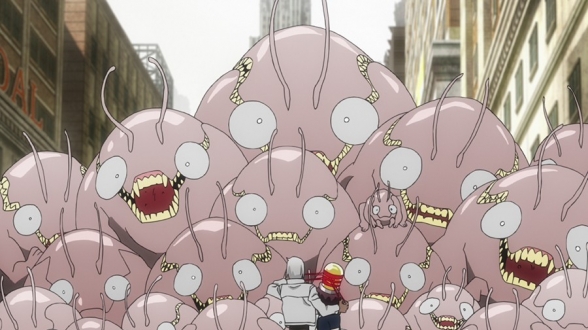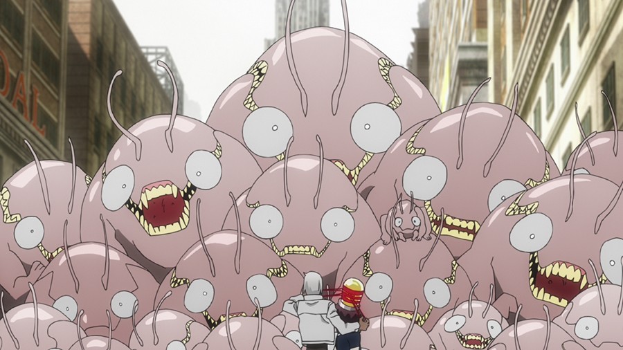 Blood Blockade Battlefront & Beyond - Vol. 01 wirft den Zuschauer ohne Rücksicht auf Verluste direkt ins Geschehen. Dies ist zwar etwas unfair gegenüber allen, die die erste Staffel nicht kennen, doch der energetische, temporeiche Erzählstil lässt ohnehin keine Zeit, um über solche Kleinigkeiten überhaupt erst nachzudenken. Mit Vollgas schreitet die Handlung voran, gönnt sich eigentlich keine Verschnaufpausen und torpediert einen regelrecht mit knackiger Action, Slapstick und derbem Dialogwitz. Kaum eine Chance also für Informationen zu den Charakteren, was aber zum einen für Kenner der Vorgängerstaffel ohnehin irrelevant ist, auf Grund der trotzdem sehr sympathischen Darstellung und klaren Figurenverteilung aber auch Neulingen keinerlei Probleme bereitet. Die einzelnen Geschichten sind zudem sehr episodenhaft und offenbaren bislang keinerlei zusammenhängenden roten Faden, was ebenfalls dafür sorgt, die Erzählung nicht nur abwechslungsreich, sondern auch leicht verdaulich zu halten.