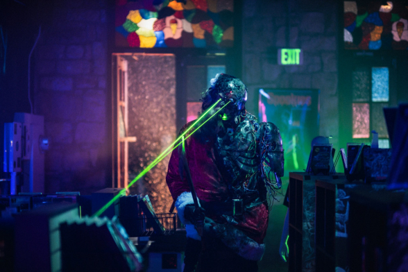 Irgendwie hat es sich - nicht erst in den letzten Jahren - eingebürgert, dass es pünktlich zur Weihnachtszeit den ein oder anderen nicht ganz so besinnlichen Film zu sehen gibt, in dem Santa die Sau rauslassen darf. Dementsprechend freudig ist die Erwartung der Genre-Fans, was sich wohl im aktuellen Kalender für ein Film verstecken mag. Dieses Mal kommt der obligatorische Weihnachtsbeitrag allerdings aus der Hand von Joe Begos, und das deutet unweigerlich ein herrlich böses Splatter-Fest an. Ein Splatter-Fest bietet Christmas Bloody Christmas dann tatsächlich, und sogar eines, das durchaus unterhaltsam ausgefallen ist. Dass die Handlung selbst hier allerdings zugunsten von Gore und Style komplett belanglos bleibt, das steht wieder auf einem anderen Blatt, ebenso wie die Tatsache, dass sich Begos deutlich zu viel Zeit nimmt, bevor sein Terminator-Santa wirklich auf die Kacke hauen darf. Wobei man nicht sagen kann, dass der lange Einstieg, der eigentlich nur aus einem endlosen Dialog zwischen Hauptdarstellerin Riley Dandy und ihrem Filmpartner Sam Delich besteht, nicht einen ganz eigenen Unterhaltungswert hätte. Dieser beschränkt sich jedoch vor allem auf Zuschauer, die selbst Interesse an Filmen und Musik haben, und damit die unzähligen Seitenhiebe und Querverweise mit einem wohligen Lächeln belohnen können, während die beiden zentralen Figuren auf ihrer nächtlichen Sauftour zusehends immer betrunkener werden - und auf die von Anfang an unausweichliche Annäherung hinarbeiten. Das macht durchaus Spaß, und funktioniert vor allem dank der sympathischen und charismatischen (und gutaussehenden) Riley Dandy recht gut, noch dazu da ihre Darbietung tatsächlich sehr natürlich und authentisch wirkt - was für einen günstig produzierten Splatter-Film tatsächlich eine echte Überraschung ist.