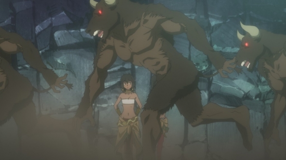 Obwohl es sich bei Danmachi: Sword Oratoria um ein Spin-Off handelt, benötigt die Handlung, zumindest bisher, keine Vorkenntnisse der Hauptgeschichte. Allerdings zeigt sich die Geschichte auf Grund der geringen Episodenanzahl der ersten Volume auch noch sehr übersichtlich und beschränkt sich überwiegend auf die Beziehung zwischen den beiden Hauptfiguren, also der Elfe Lafiya und Aiz Wallenstein, während die übrigen Figuren auf Grund ihrer Vielzahl noch sehr blass bleiben. Die Inszenierung der ersten Episoden zeigt sich dabei zweigeteilt. Während diverse, phasenweise regelrecht epische Actionsequenzen die klaren Highlights markieren und den Zuschauer in eine wundervolle Fantasywelt katapultieren, besteht die übrigen Handlung aus einem Kontrastprogramm in Form von jeder Menge Humor in Alltagssituationen und ausgiebigem Fanservice. Schon viele Serien haben bewiesen, dass diese Mischung durchaus aufgehen kann, es bleibt jedoch abzuwarten, ob Danmachi: Sword Oratoria diesen Spagat ebenso souverän meistert oder sich einer der Bestandteile auf Dauer in den Vordergrund drängt. Bislang ist das Geschehen auf jeden Fall ebenso unterhaltsam wie interessant, und die Beziehungen zwischen den Figuren strahlen bereits jetzt sowohl Sympathie als auch ansprechende Ansätze aus.