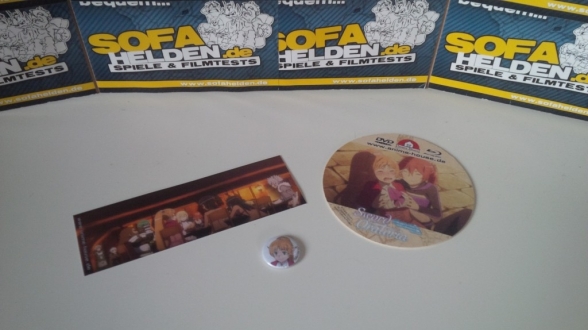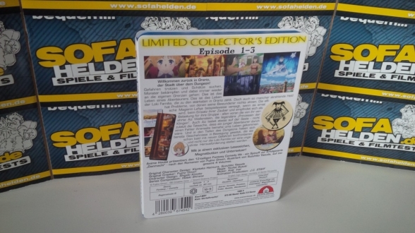Die Amaray der Collector´s Edition befindet sich in einem O-Card Schuber, der sowohl das gleiche Covermotiv als auch die gleichen Informationen auf der Rückseite liefert. Der Schuber unterscheidet sich somit lediglich im Schriftzug "Limited Collector´s Edition" sowie dem Hinweis auf die zusätzlichen Gimmicks, bestehend aus einem Lesezeichen, einem Magnetbutton sowie einem Untersetzer. Das Lesezeichen zeigt diverse Bilder aus dem Danmachi: Sword Oratoria Universum, während der Magnetbutton ein Porträt der Elfe Lefiya bereithält. Der Untersetzer zeigt auf der einen Seite ein Bild von Lefiya und der Göttin Loki, auf der anderen das Logo der Loki-Familia. Das beiliegende Booklet beinhaltet neben einem ausführlichen Episodenguide auch viele Informationen zu den Charakteren sowie diversen anderen Inhalten der Serie.