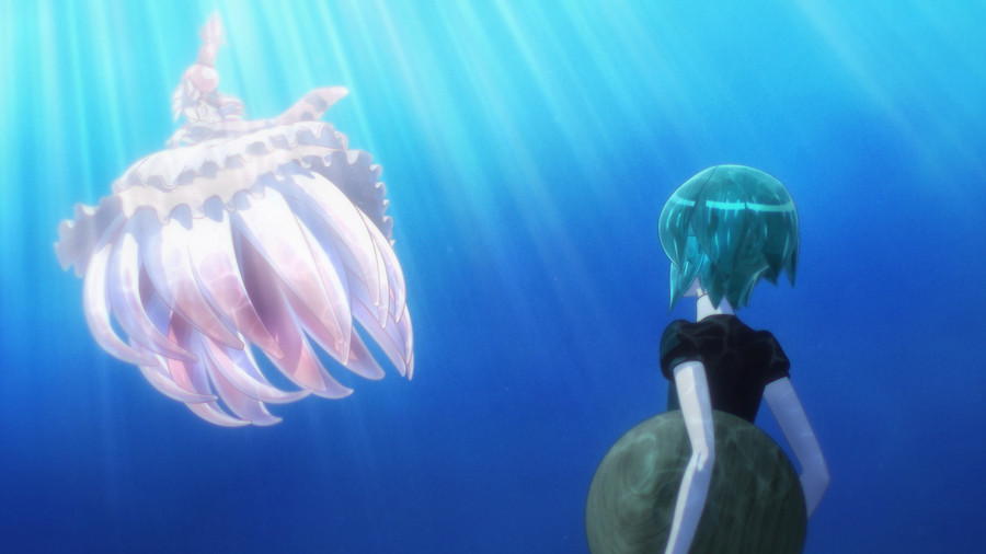 Das Land der Juwelen ist eine ebenso faszinierende, wie außergewöhnliche Animeserie. Zwar lässt sich auch nach den ersten vier Episoden noch gar nicht so genau sagen, ich welche Richtung sich das Geschehen wohl entwickeln wird, und welcher Grundgedanke hier eigentlich hinter dem Ganzen steckt, zweifellos ist das erschaffene Universum aber äußerst innovativ und einzigartig. Überall gibt es Feinheiten und vielversprechende Ideen zu entdecken, und auch das zugrundeliegende Konzept bietet eine Menge Potential. Während man als Zuschauer zunächst noch denken könnte, es handle sich bei Das Land der Juwelen um einen ereignisarmen Slice-of-Life Vertreter, der lediglich mit ungewöhnlichen Figuren zu punkten versucht, belehrt einen das Geschehen schon sehr bald eines Besseren. Auf der einen Seite steht tatsächlich der Alltag der menschenähnlichen Edelsteine im Fokus, doch sowohl zahlreiche sehr gelungene Actionsequenzen, wie auch interessante Storyentwicklungen, sorgen gemeinsam mit der sympathischen Hauptfigur für eine unerwartete Vielschichtigkeit, eine Menge Abwechslungsreichtum innerhalb der Erzählung, wie sogar sehr spannende Passagen. Unterdessen gehen packende und innerhalb des geschaffenen Universums sehr durchdachte Hintergrundinformationen Hand in Hand mit interessanten Konfliktsituationen, aber auch emotionalen Momenten. Die Mischung aus Humor, rasanter Action, sowie eher ruhiger, inhaltlicher Weiterentwicklung ist jedenfalls bislang sehr gut gelungen und macht definitiv Lust auf mehr.