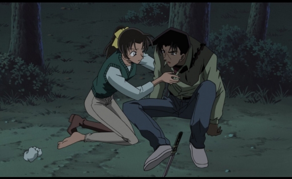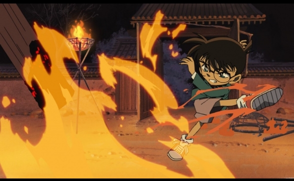 Nach all den actiongeladenen Blockbustern, die die Reihe bisher zu bieten hatte, ist Die Kreuzung des Labyrinths geradezu schockierend bodenständig. Tatsächlich ist es wohl der erste Detektiv Conan-Film, der der Anime-Serie wirklich nahekommt, da er sich wirklich mehr in Richtung Krimi entwickelt als ein Actionfilm oder Thriller zu werden - und dabei trägt er den Titel Detektiv Conan beinahe zu Unrecht. Überwiegend bekommt man während den 108 Minuten nämlich den knackig braunen Heiji zu sehen und Conan wirkt im Grunde genommen nur wie ein knuffiger Nebencharakter. In meinen Augen eine durchaus willkommene Abwechslung, die einer interessanten Figur verdiente Aufmerksamkeit schenkt, ebenso wie mehr Hintergrundgeschichte.