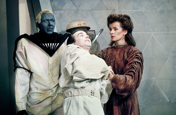 Schnell stellt sich heraus, dass er in der Vergangenheit bei den Wissenschaftlern in Ungnade gefallen ist. Im Gespräch mit Professor Dastari findet der Doktor heraus, das der Professor wieder einmal Gott spielt und an den Bediensteten Androiden herumspielt. Er programmierte eine Androidin um, welche kommende Soldaten von Lord Tara, welche mit Kriegsschiffen auf dem Weg sind, einzuschleusen versucht.