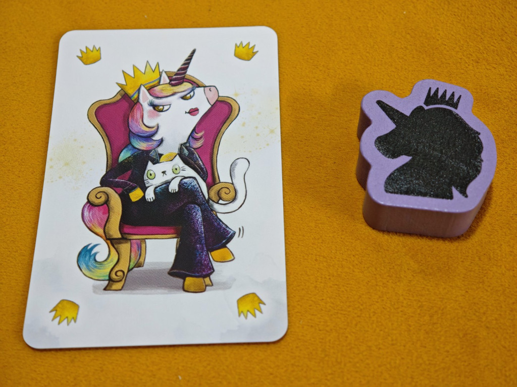 Der Sieger einer Partie erhält übrigens die Einhorn-Holzfigur als Trophäe. Und weil natürlich auch die anderen Mitspieler diese Trophäe ergattern wollen, wird meist direkt die nächste Partie drangehängt.