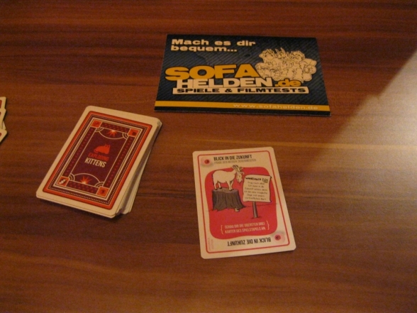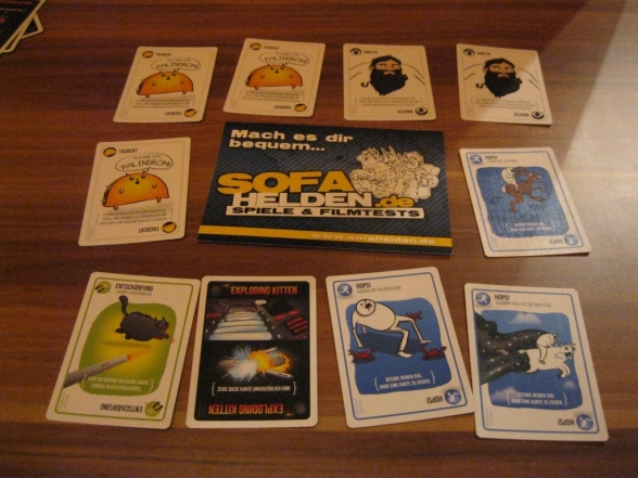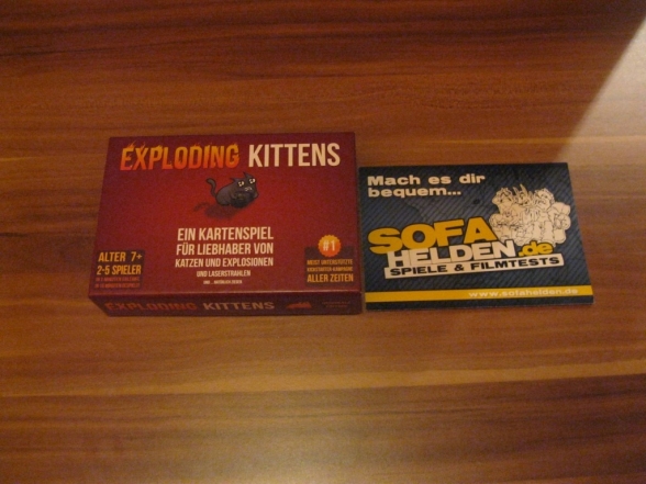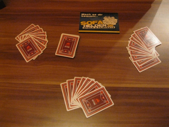Das Exploding Kittens kein bierernstes Spiel ist, erkennt man nicht nur am Titel, sondern auch an den Sprüchen auf der Verpackung. Es ist primär ein Partyspiel, bei dem es darum geht, den explodierenden Katzen aus dem Weg zu gehen und dabei den Gegenspielern Steine in den Weg zu legen. Als erstes werden an jeden Spieler Karten ausgeteilt. Außerdem erhält jeder Spieler eine Entschärfung und je nach Spieleranzahl werden „Exploding Kitten“-Karten mit den restlichen Entschärfungskarten und den übrigen Karten gemischt und als Nachziehstapel bereitgelegt. Dann haben die Spieler reihum die Wahl, eine oder mehrere Karten zu spielen und deren Sonderfähigkeiten auszuführen. Dazu gehört zum Beispiel Karten aus dem Nachziehstapel anzusehen oder keine Karten ziehen zu müssen. Nach dieser Spielphase muss man eine Karte ziehen, sofern dass durch keine Aktion unterbunden wurde. Ist das eine der explodierenden Katzen, so fliegt man in die Luft, außer man hat eine Entschärfung, dann kann man die Karte wieder zurück in den Stapel stecken. Dadurch werden es im Stapel immer weniger Karten und die Wahrscheinlichkeit, eine „Exploding Kitten“ zu ziehen steigt. So scheiden nach und nach immer mehr Spieler aus und am Ende bleibt der Sieger als einziger Überlebender übrig.