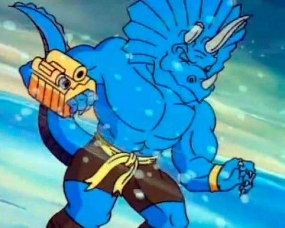 Von der Geschichte abgesehen haben wir es mit ziemlich sympathischen Charakteren zu tun, deren ikonische Eigenarten manchmal vielleicht etwas überstrapaziert werden, größtenteils aber vorteilhaft funktionieren. Die blauhäutige Weltraumpolizistin Chedra ist sehr regelkonform und zitiert in ausnahmslos jeder Situation ihr allumfassendes Regelbuch - ein Running Gag, der maßlos überstrapaziert wird, den Triceratops Spike aber regelmäßig auf die Schippe nimmt. Der Shopping-Kanal-süchtige Flugsaurier Bullzeye hingegen ist mir über 20 Jahre hinweg genauso fest in Erinnerung geblieben wie die allgemeine Dinosaurier-Vorliebe für scharfes, mexikanisches Essen (auch hier sieht man die Ähnlichkeit zu den Turtles mit ihrer Pizza-Versessenheit).