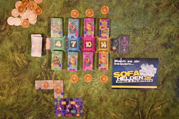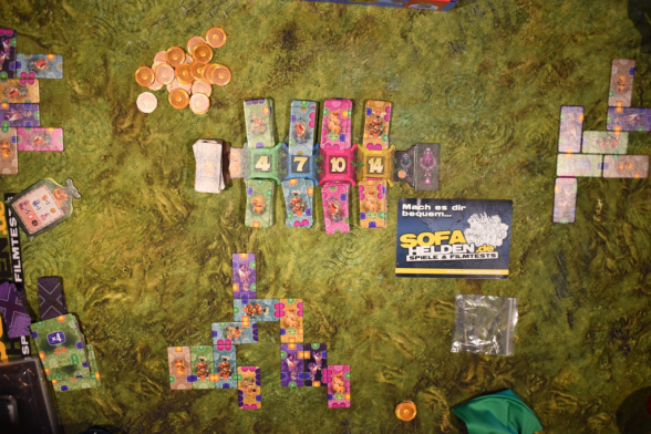 Runde um Runde versucht Ihr Euch einen Garten zu puzzeln, bei dem Ihr möglichst viele vollständige Edelsteine habt. Diese bringen Euch Punkte, von denen Ihr Euch wiederum neue Plättchen kaufen könnt. Irgendwann werdet Ihr so in der Lage sein, das Siegplättchen mit dem Wert Siebzehn beziehungsweise Zwanzig zu kaufen. Ist das der Fall, endet das Spiel und die Person, die das Siegplättchen gekauft hat, gewinnt das Spiel.