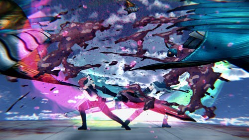 Interessant und ungewöhnlich zugleich ist der Animationsstil. Als würde man hier gezielt auf die Verbindung zu den namensgebenden Videospielen setzen, arbeitet man augenscheinlich viel mit Computereffekten. Die Aragami, die bösartigen übergroßen Monster, sind ohnehin alle als 3D-Modelle animiert eingefügt, was bei mir persönlich immer etwas die Atmosphäre zerstört (genauso, wie wenn bei One Piece z.B. das Piratenschiff das einzige nicht gezeichnete Element auf dem Bildschirm ist), bei God Eater sticht es aber tatsächlich kaum hervor, weil alles viel "künstlicher" wirkt als man es von Animes gewohnt ist. Vielleicht muss man es sehen, um zu verstehen, aber alles glänzt viel mehr. Im Gegensatz zu Attack on Titan sind wir hier wirklich in einem Sci-Fi-Szenario mit jeder Menge Computern, abgefahrenen Waffen und Kostümen, denen der computergemachte Glanz sogar steht. Und, wie gesagt, es erinnert stark an Cutscenes und Charakterdarstellungen in Videospielen.
