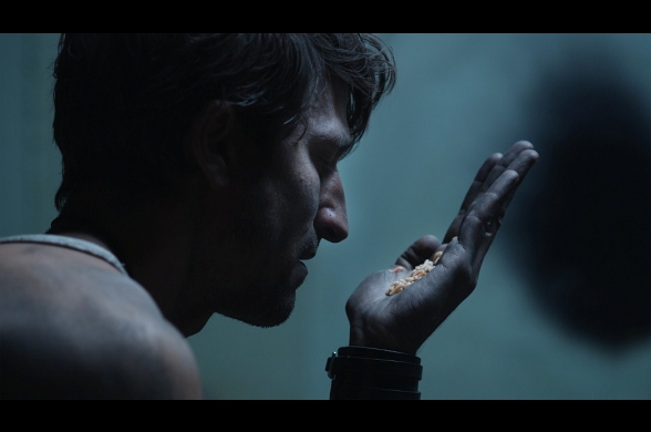Doch bald wird er endlich fündig. In der Lampe an der Decke befindet sich ein Schlüssel, mit dem sich die Spinde öffnen lassen. Darin befinden sich zum einen Hammer und Meißel und zum anderen zwei Gasflaschen mit Sauerstoff und zur Verwendung als Gasbrenner. Doch der Einsatz der Werkzeuge an der Metalltür scheint hoffnungslos, bis er hinter dem Spind ein Loch in der Wand entdeckt, das er per Hammer und Meißel Stück für Stück vergrößert. Nach einem ganzen Tag Arbeit und dem zusätzlichen Einsatz des Gasbrenners ist das Loch schließlich groß genug, um selber hindurchzukrabbeln. Doch anstatt der ersehnten Freiheit erwartet Mark ein ähnlicher und verschlossener Raum. Nur befinden sich darin ein Sarg und eine Stehlampe. Im Sarg schläft eine farbige Frau (Rungano Nyoni), die er weckt und deren Sprache er anschließend nicht versteht. Doch bald stellt sich heraus, dass sie sich in der gleichen Lage befindet wie er. Gemeinsam trinken sie ihr eigenes Urin, nur um zu überleben. Vor allem Mark scheint mit seinen Kräften am Ende, als sie erneut versuchen, den Kampf gegen den Beton mit Hammer und Meißel aufzunehmen. Ein Wettkampf gegen die Zeit und auf Leben und Tod beginnt für die beiden...