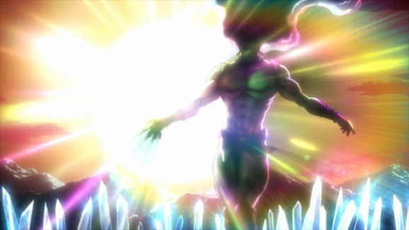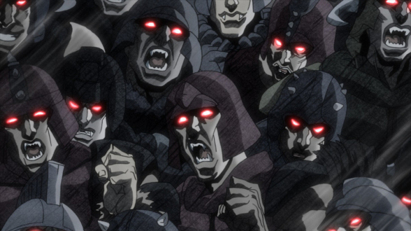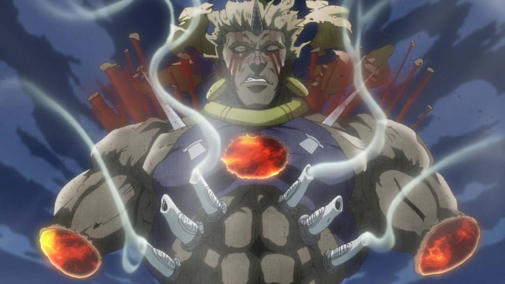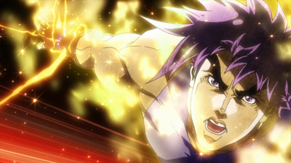 Ganz so, wie es sich für JoJo´s Bizarre Adventure gehört, tritt das Finale der Battle Tendency - Arc kräftig aufs Gaspedal, und schickt den Zuschauer auf einen rasanten wie spektakulären Actiontrip, der dem Handlungsbogen um Joseph Joestar einen absolut würdigen Abschluss beschert. Ausgiebig zelebrierte Kampfszenen sind dabei das zentrale Element der finalen Phase, selbstverständlich gepaart mit knackigen Sprüchen, die mindestens ebenso derb einschlagen, wie es die Fäuste JoJos tun. Doch auch wenn dieses geballte Fest der Coolness - wie gehabt begleitet von neongrellen Farben und einem rockigen Retro-Soundtrack - bereits ausreichend Unterhaltungs- und Schauwerte liefern würde, so gelingt es JoJo´s Bizarre Adventure zudem, auch der Handlung noch die ein oder andere Überraschung zu entlocken. Am Ende greifen alle Erzählstränge ansprechend ineinander und fügen sich zu einer stimmigen Einheit zusammen, auch wenn die Geschichte selbstredend vom brachialen Stil der Inszenierung und dem ohne Unterlass auf Krawall eingestellten Geschehen immer wieder ein wenig überlagert wird - Krieger-Ehre, Macho-Sprüche und schräger Humor inklusive. Das alles macht die Battle Tendency - Arc letztendlich zu einem runden Erlebnis, das eigentlich sogar als gelungenes und zufriedenstellendes Ende der Serie dienen könnte - aber wer will das schon? Genau deshalb stellt die Erzählung natürlich bereits jetzt die Weichen für die nächste Arc, und macht spätestens mit dem kurzen Cliffhanger nach dem Abspann der finalen Episode direkt wieder Lust auf eine Rückkehr ins schräge Retro-Universum JoJos, in dem man dann allem Anschein nach sogar ein Wiedersehen mit einem bereits bekannten Charakter feiern kann...