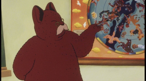 Night on the Galactic Railroad macht es dem Zuschauer wahrlich nicht einfach, denn Regisseur Gisaburo Sugii hat hier eine Adaption geschaffen, die sich extrem ruhig, wenig zusammenhängend und stellenweise verwirrend präsentiert, dabei aber eigentlich eine sehr düstere, melancholische und tragische Geschichte mit philosophischen Ansätzen erzählt. Die episodenhaft aufgebaute Handlung, unterteilt in zahlreiche Einzelkapitel, liefert zunächst einmal nicht viele Informationen und kümmert sich im ersten Drittel des Films vor allem um die Hauptfigur Giovanni, ohne währenddessen jedoch wirklich in die Tiefe zu gehen. Vielmehr werden zahlreiche Figuren und Locations vorgestellt, ohne dabei einen echten Zusammenhang erkennen zu lassen, was das Geschehen vor allem zu Beginn sehr anstrengend und zäh gestaltet. Wenn dann die Fahrt mit der intergalaktischen Eisenbahn startet, verfolgt man als Zuschauer eine Aneinanderreihung unterschiedlichster Szenerien, die teilweise sehr skurril ausfallen und ebenfalls zunächst einmal keine lineare oder konsequente Erzählung erkennen lassen. In diesem Bereich des Films werden weiterhin unzählige Fragen beim Zuschauer aufgeworfen, auf die es einfach keine Antwort zu geben scheint. Erst gegen Ende der Reise und nach der Rückkehr nach Hause liefert Night on the Galactic Railroad schließlich eine letzte Erklärung, die zwar viele der aufgeworfenen Fragen immer noch nicht beantwortet, auf Grund ihrer Wendung und der darauffolgenden Erleuchtung aber dennoch einen kleinen Kloß im Hals hinterlässt. Auf der einen Seite ist es verständlich, dass der Film als Klassiker des Animefilms angesehen wird, auf der anderen Seite ist der Erzählstil von Gisaburo Sugii jedoch im Gesamtbild sehr eigenwillig und so extrem ruhig beziehungsweise unspektakulär angelegt, dass sich mit Sicherheit nicht jeder Zuschauer auf das Ganze einlassen kann.