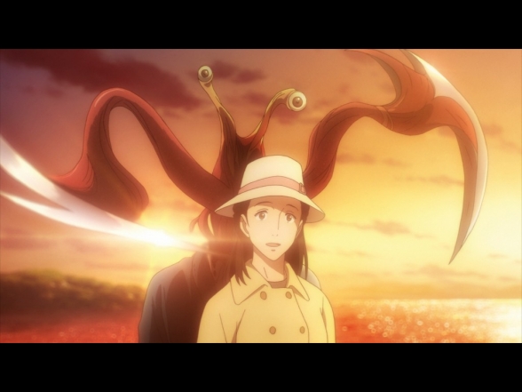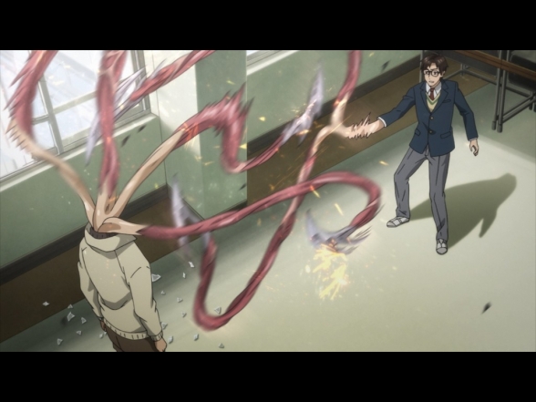 Bereits die ersten sechs Episoden von Parasyte: The Maxim machen klar, was hier für ein abgefahrener Anime auf den Zuschauer losgelassen wird. Allerdings gelingt es der Serie bei all den skurrilen Einfällen durchwegs, zum einen den Charakteren eine schöne Entwicklung zukommen zu lassen, als auch interessante Themen außerhalb der eigentlichen Haupthandlung anzuschneiden. So stützt sich Parasyte: The Maxim nicht einfach nur auf eine Aneinanderreihung von für eine Freigabe ab 16 Jahren äußerst splattrigen Actionszenen, sondern funktioniert dabei gleichzeitig als Coming-of-Age Drama, wirft einen kritischen Blick auf den Menschen als Teil des ökologischen Gleichgewichts auf der Erde, oder spricht auch die durch Emotionen entstehenden zwischenmenschlichen Probleme an. Es steckt jedenfalls deutlich mehr in dieser Animeserie, als man zunächst vermuten könnte. Dabei verzichtet Parasyte: The Maxim, im Gegensatz zu vielen anderen Serien, auf die Einführung zahlloser Figuren und ein riesiges Universum, sondern konzentriert sich lieber auf ein paar wenige Charaktere, die dafür ausführlich ausgearbeitet werden. Wirklich toll ist dabei die vorhandene Dynamik zwischen Shinichi und Migi, welche die Serie in weiten Teilen trägt. Gleichzeitig sorgen die sarkastischen, schwarzhumorigen Kommentare des emotionslosen Migi für eine ordentliche Prise Humor, aber auch die stimmige Einbindung der bereits angesprochenen Themenbereiche. Denn genauso wie Migi die Menschen immer besser kennenlernt, jedoch nur schwerlich versteht, taucht auch der Zuschauer immer tiefer in die Handlung ein, wodurch einige der vorhandenen emotionalen Momente noch deutlich an Intensität gewinnen.