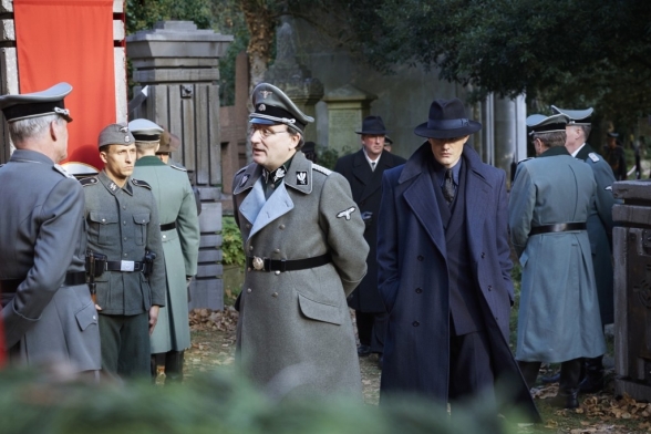Wie so oft bei britischen Serienproduktionen startet auch SS-GB sehr gemächlich, wodurch die erste Folge ein wenig zäh wirkt. Im weiteren Verlauf weiß sich die Serie allerdings zu steigern und bietet deutlich mehr Unterhaltungswerte, vor allem in Bezug auf seine Figuren. Die einzelnen Charaktere sind nämlich hervorragend besetzt, wobei man den Machern hier zugutehalten muss, dass die deutschen Hauptfiguren auch mit deutschen Schauspielern besetzt wurden, was dem Ganzen eine wesentlich markantere Authentizität beschert. Apropos Authentizität, in diesem Bereich wurde überhaupt tolle Arbeit geleistet. Sowohl die Kostüme als auch die Settings wirken absolut glaubwürdig, wobei sogar darauf geachtet wurde, so viel wie möglich an Originalschauplätzen zu drehen. Selbst digital erstellte Verwüstungen und wehende Hakenkreuzbanner fügen sich harmonisch mit ins Bild ein. Den Löwenanteil daran, dass SS-GB mit seiner Dystopie tatsächlich funktioniert, haben jedoch tatsächlich die Darsteller. Während Douglas Archer, dargestellt von Sam Riley, anfangs noch recht naiv erscheint, entwickelt sich dieser im Verlauf der Serie merklich weiter und kann nach anfänglich kaum vorhandener Identifikationsrolle sogar einige Sympathien entwickeln sowie stimmig seine emotionale Zerrissenheit auf den Zuschauer übertragen. Heimlicher, oder besser gesagt unheimlicher Star ist jedoch Lars Eidinger als Standartenführer Oscar Huth, der mit seiner stets ruhigen, aber gleichzeitig immer auch bedrohlichen Ausstrahlung seine Rolle perfekt ausfüllt. Am Ende ist es aber auch die Geschichte selbst, die SS-GB wirklich sehenswert macht, denn außerhalb des alternativen Historienszenarios weiß die Handlung dank ihrem vielschichtigen und wendungsreichen Verlauf eine ordentliche Spannungskurve zu erzeugen und den Zuschauer bei Laune zu halten. Natürlich könnte man hier bemängeln, dass sich SS-GB mehr darauf konzentriert, eben diesen Krimi- bzw. Thrilleranteil auszubauen anstatt sich intensiver um die alternative Historienkomponente zu kümmern, dies ist aber zum einen der Romangrundlage geschuldet, zum anderen ergibt beides zusammen jedoch ein durchaus harmonisches Gesamtbild, ohne durch eine inhaltliche Fixierung auf Dauer zu langweilen.