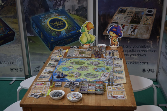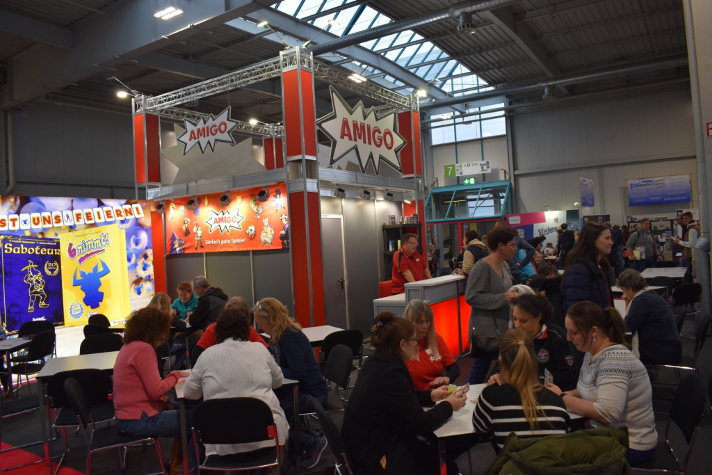 Direkt zur Eröffnung haben wir es dieses Mal mit schulpflichtigen Kindern natürlich nicht geschafft, aber auch um 15:00 war es noch relativ ruhig. Man konnte schon die Veränderungen erkennen, denn es waren auf jeden Fall wesentlich mehr Messestände vorhanden als im vergangenen Jahr. Sonst fühlten wir uns sofort im erweiterten Wohnzimmer wieder wie zuhause, schlenderten zur Spielothek und spielten erst einmal ein paar Kinderspiele. Dabei entging uns natürlich nicht, dass sich die Hallen langsam, aber stetig füllten. Dann wagten wir ein paar Blicke in Richtung der Spiele-Autoren-Zunft und konnten dort einen ersten Blick auf den Prototypen zu Restless werfen. Ein einsteigerfreundliches Rollenspiel in Brettspielform, das aktuell nur auf Englisch verfügbar war, aber schon einen bleibenden Eindruck bei uns hinterließ. Natürlich sind wir auch so über die Messe geschlendert und haben neben bekannten Größen wie Amigo, Kosmos, Ravensburger, Hans im Glück auch ein paar neue Gesichter entdeckt. Hierzu gehörten beispielsweise Frosted Games oder Elznir. Am Ende waren die Hallen dann doch gut gefüllt, bevor es dann am ersten Tag mit der langen Nacht der Spiele um 23:00 Uhr endete.