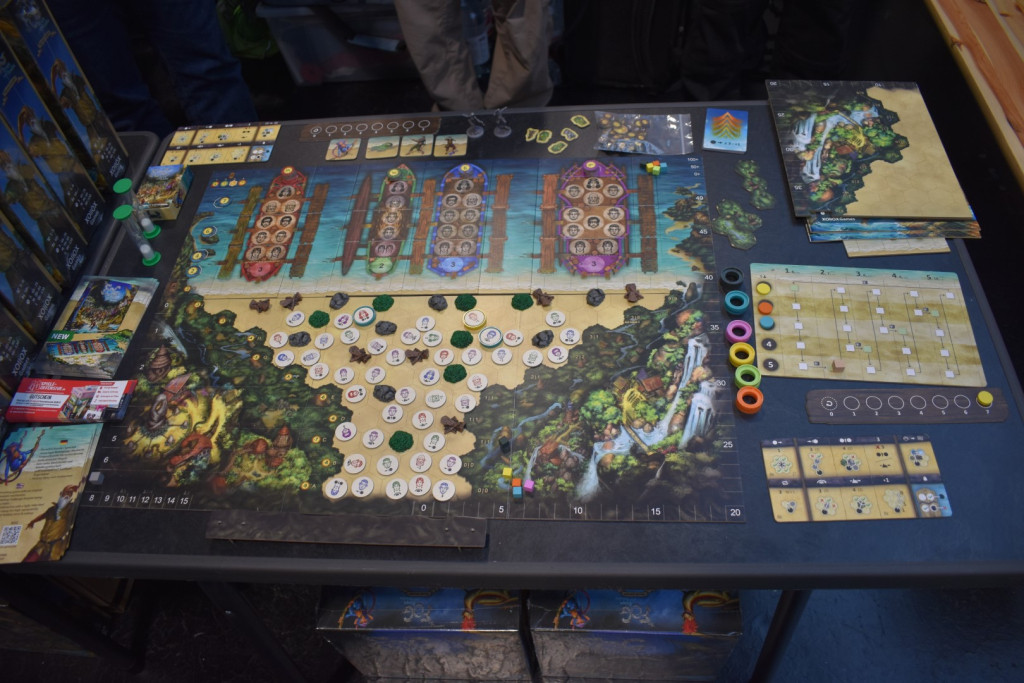 Erfahrungsgemäß ist der Sonntag als letzter Messetag immer etwas ruhiger, doch weit gefehlt, die Hallen waren wieder ordentlich gefüllt. Wir spielten mit den Kindern ein paar bekannte Sachen, aber auch neues, wie The Fog - Escape from Paradise von XOIIOX, dass uns in der zwei Spieler Variante schon fast an eine Partie Schach erinnerte. Sicherlich ein Titel, der unter die Kategorie Easy to learn - hard to master fällt. Gerne wären wir auch noch mehr in Richtung der Spieleautoren gegangen, auf unserer Liste stand noch eine Partie Kleine Recken mit dem Autor Alex. Aber, das ist dann leider ausgefallen, nicht zuletzt, weil es einfach zu viel zu entdecken und auszuprobieren gab. So blieben wir noch eine Weile bei Kagu Spiele und einer Partie Kiribati hängen. Hier führten wir auch gute Gespräche zum inklusiven Herzensprojekt Jahu Safari und der Ausrichtung des Verlages, möglichst umweltfreundlich zu produzieren.