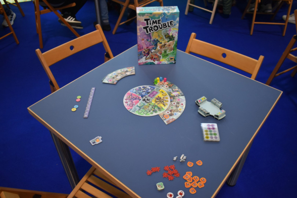 Neben unserer Kernkompetenz, den Gesellschaftsspielen, gab es auch jeder Menge zu entdecken. Bei unseren Kindern fanden die Hüpfburg und der Spaziergang auf dem Mond großen Anklang. Davon abgesehen gab es gerade am Freitag einige Termine, die sich vor allem an Schüler*innen richteten, bis dann am Abend das Gütesiegel „Generationenspiel“ vergeben wurde. An Spielen gab es jede Menge Neuheiten zu bestaunen. Natürlich war Amigo wieder groß mit dabei und präsentierte seine Neuheiten, die wir ja bereits auf dem Spielefest bewundern durften. Asmodee war wieder etwas kleiner präsent, dafür etwas besser als letztes Jahr. Hier stieß uns Monkey Palace und das neue TCG Altered ins Auge. Unübersehbar war wieder die Spieleoffensive, die mit Verkaufsständen in Kombination mit Verlagsständen die Besucher anlockte. Dort lag unser Fokus auf Dragon Dale. Bei Ravensburger fiel uns (und vor allem den Kindern) Star Wars Gravitrax auf. Zeitlich eher in der Vergangenheit angesiedelt, ist das Kinderspiel des Jahres Die magischen Schlüssel, das wiederum am Stand von Gamefactory getestet oder in der Spielothek ausgeliehen werden konnte. Auch der „neue“ Verlag Elznir Games war mit einem ordentlichen Stand und mit Spielen wie Babylon vertreten.