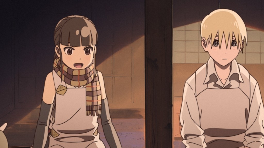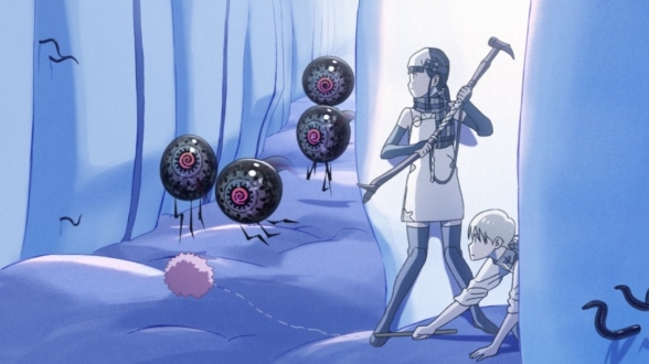 Die auf einem Kurzfilm basierende Handlung erinnert mit der mythischen Kreatur und der leicht abstrakten Handlung, ebenso wie den fantasievollen Lebensorten der Zahnärzte, unweigerlich an einen Ghibli-Film - zwar nicht ganz auf demselben Animations-Niveau, dafür aber mit einer deutlich geradlinigeren Handlung und weitaus mehr Action. Das hat zur Folge, dass die Charaktere ein bisschen zu kurz kommen und sich immer noch ein wenig so anfühlen, als hätten sie nur den Umfang, der in einen Kurzfilm passt. Gerade der junge Soldat ist eine sehr hohle Figur, zumindest was seinen Gehalt angeht und das Gefühl, das der Zuschauer für ihn bekommt. Nonoko hingegen ist die klassische Anime-Film-Protagonistin und könnte so auch in einem Ghibli-Film auftauchen.