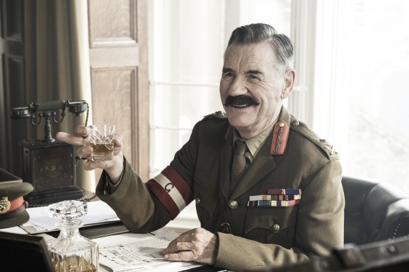 Der Film ist an sich eher arm an Handlung, beginnt mit dem Fund der Druckerpresse und anschließend beschäftigt er sich konstant mit dem Finden von Ideen für lustige Artikel. Seien es wenig schmackhafte Rationen oder widersinnige Befehle, die Soldaten des zwölften Batalions verwandelten alles gekonnt und mit einer gehörigen Portion Niveau in eine Lachnummer. Nicht alle hochrangigen Militärs sind ebenso begeistert wie die Fußsoldaten an der Front, aber immerhin General Mitford kann lachen - besetzt von Monty Pythons Michael Palin, der trotz einer kurzen Gastrolle natürlich triumphierend auf dem Cover posiert. Auch der Humor versucht sich an der britischen Komikertruppe zu orientieren, schafft dies allerdings mal besser und mal schlechter. Immerhin schön umgesetzt sind die "Vorlesungen" der humorbepackten Zeitungsartikel. Anstatt sie tatsächlich einfach nur vorzulesen werden sie wie kleine Theaterstücke in Schwarzweiß aufgeführt, passend zum Tenor des Schreibstils. Die Umsetzung hier gefällt mir ausgesprochen gut, manchmal ist es aber auch etwas dick aufgetragen. Abgesehen davon, dass viele Gags sicher eher gezündet hätten, wenn man mit seinen Kameraden im Schützengraben gesessen hätte. Inzwischen zünden bei unserer Generation ja kaum noch Gags aus den 80ern - diese hier sind satte 100 Jahre alt. Die beiden Protagonisten, gespielt von Ben Chaplin und Julian Rhind-Tutt, sind aber ausgesprochen sympathisch und gleichen dieses Defizit mit ihrer lockeren humorvollen Art wieder aus.