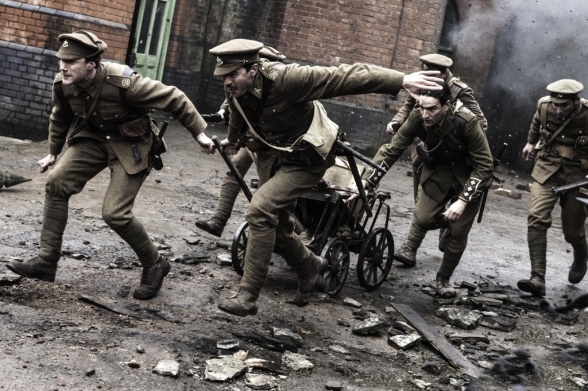 30.10.2016 von LorD AvengerBelgien, 1916: Als Captain Roberts (Ben Chaplin) seine Einheit durch die zerbombte Stadt Ypres führt, stoßen sie in den Ruinen auf eine alte, noch intakte, Druckerpresse. Spontan beschließen die Männer, eine Zeitung für britische Soldaten an der Front herauszugeben. Sie nennen diese nach dem Ort, in dem sie die Druckerpresse gefunden haben: Ypres, von den Briten ausgesprochen "Wipers", also "The Wipers Times". Gegen alle Widrigkeiten des Generalstabs, der Ziel des bissigen Humors ist, wie auch der Deutschen, die bei einem Angriff die Druckerpresse zerstören, schaffen es Roberts und seine Männer, die Zeitung bis Kriegsende zu produzieren.