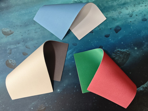 Den Tisch gibt es in vier verschiedenen Farben. Wir haben uns für die naturbelassene Variante entschieden, d.h. das Holz wurde nicht eingefärbt und hat die natürliche hellbraune Farbe der Wildeiche. Es gibt aber auch dunkelbraune, schwarze und weiße Varianten. Dem Tisch liegen außerdem insgesamt drei doppelseitige Neopren-Matten bei, sodass man für die Spielfläche zwischen sechs Farben wählen kann.