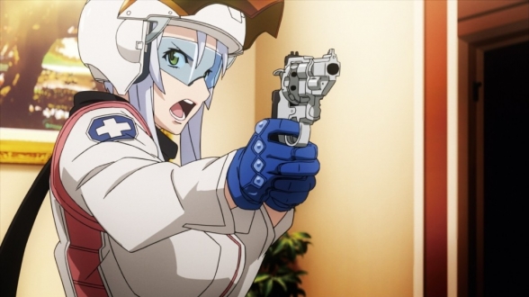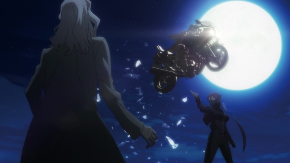 Qualitativ haben wir sehr schöne, detaillierte Zeichnungen und wenn die weiblichen Figuren sich schon nicht aufgrund ihrer Körbchengröße unterscheiden, so haben sie doch alle ganz eigene Alleinstellungsmerkmale, die das unterscheiden einfacher macht - spätestens wenn sie mit ihren verschiedenen Kampfmethoden auffahren. Etwas schade, wenn auch nicht ganz so abstoßend wie in anderen Animes, empfand ich mal wieder das Einbringen von 3D-Animationen zur einfacheren Darstellung von beispielsweise den Motorrädern und Pistolen. Gleichzeitig ermöglichte es aber auch ein paar ziemlich coole Kamerafahrten, wodurch die Entscheidung zu verkraften ist.