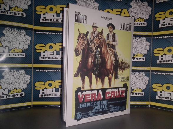 Und dennoch: Vera Cruz ist ein Meilenstein des Western-Genres. Nicht etwa, weil der Film ein besonders guter Western geworden ist, sondern viel mehr weil er teilweise wegweisend das Genre auf den Kopf stellte, und dabei in so manchem Bereich seiner Zeit ein ganzes Stück voraus war. So ist Vera Cruz beispielweise durchzogen von einer Menge Sarkasmus und bissigem Humor, dabei aber auch völlig frei von klassischen oder typischen Heldenfiguren oder den ernsten Untertönen, die das Genre bis dato geprägt hatten. Auch die genreüblichen Grenzen zwischen Gut und Böse sucht man hier vergeblich, ebenso wie die Western-Grundpfeiler von Ehre, Mut und Männerfreundschaften. Stattdessen präsentiert Robert Aldrich hier einen der - wenn nicht den - ersten Buddy-Movie, in dem zwei völlig unterschiedliche Charaktere zusammenfinden, um ein gemeinsames Ziel zu erreichen. Die gegensätzlichen Charaktere von Gary Cooper und Burt Lancaster bilder hier einfach die perfekte Basis für einige extrem unterhaltsame Sequenzen, die man zu diesem Zeitpunkt in dieser Form noch nicht gesehen hatte. Gary Cooper, bereits seit Jahren als minimalistisch agierender Held im Genre etabliert auf der einen Seite, und auf der anderen der dauergrinsende Draufgänger und schauspielerische Frischlings Burt Lancaster, dieses Duo muss man einfach ins Herz schließen. Angereichert ist Vera Cruz aber auch mit reichlich Verrat, Gier, intrigantem Verhalten und purem Egoismus, und steht damit auch erzählerisch in völligem Kontrast zu dem, was Westernfans zur damaligen Zeit gewohnt waren. Genau diese ungewöhnliche Mixtur macht Vera Cruz aber zu etwas ganz Besonderem, und zu einem grundlegend andersartigen Western. Letztendlich lieferte eben dieser völlig neuartige, und damals extrem mutige Anstrich den Startschuss für die erst später folgenden Italo-Western, denn erstmals durften Anti-Helden und amoralisch beziehungsweise unethisch handelnde Charaktere im Mittelpunkt eines Films stehen, und dem Zuschauer ohne Reue oder Gewissensbisse ein Lächeln ins Gesicht zaubern.