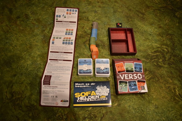 17.03.2026 von Born2bewildVerso ist ein Kartenspiel, dass unter die Kategorie: Flog bis zur SPIEL unter dem Radar. Denn auf der Messe spielten wir eine Maxi-Version des Spiels bei Gigamic. Dann dachten wir erst einmal: richtig cooles Spielmaterial und waren dann etwas irritiert, als wir die normale, kleinere Version mit „normalen“ Karten und nicht die aus Schaumstoff in der Hand hielten. Doch das sollte uns nicht davon abhalten, einen genaueren Blick auf die englische Version des Spiels zu werfen. Ob es uns davon abgehalten hat, dem Spiel eine gute Wertung zu geben, erfahrt Ihr in unserem Review…