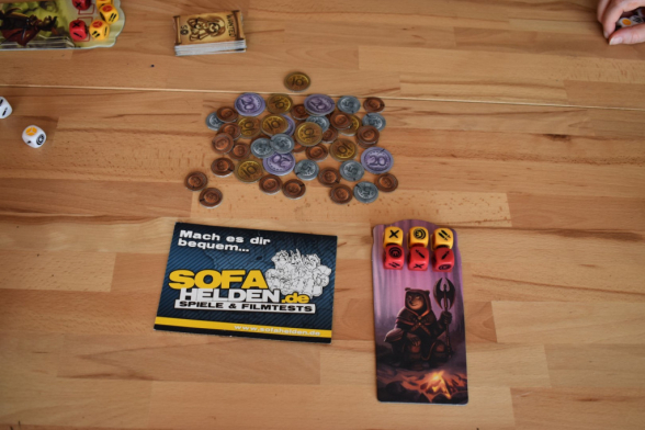 Würfelhelden ist im Kern ein Würfelspiel, bringt aber einiges an zusätzlichem Spielmaterial mit. So sind Charakterbögen, Geld und die gesuchten Bösewicht in Stanzbögen untergebracht und warten auf ihre Befreiung. Die Würfel sind von guter Qualität und mit den Symbolen sehr nett gestaltet. Die Charaktere auf den Tableaus sind sehr schön und liebevoll gestaltet.